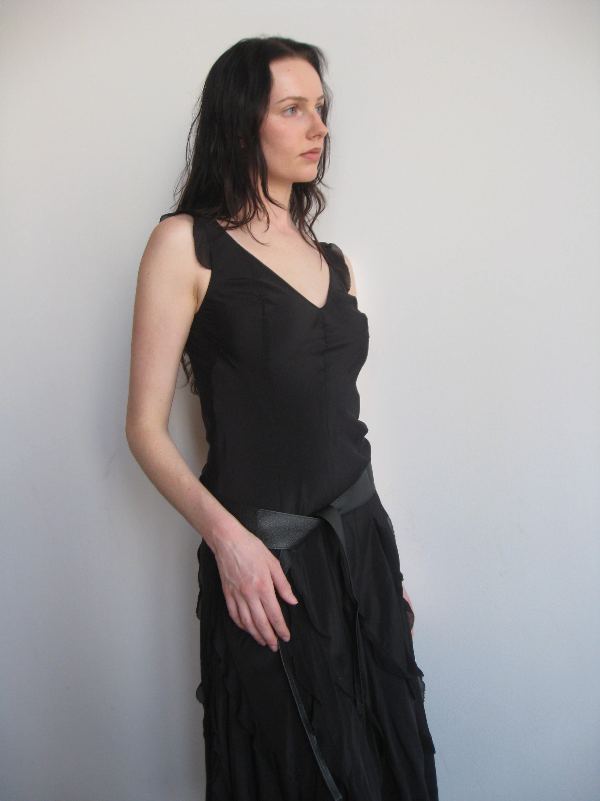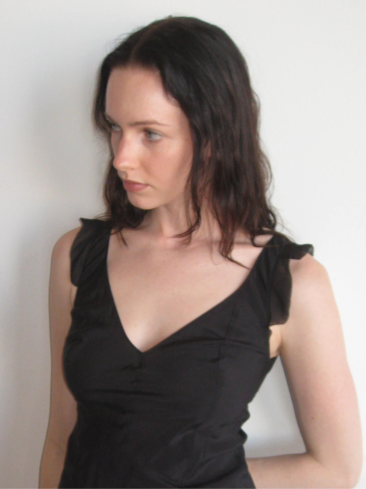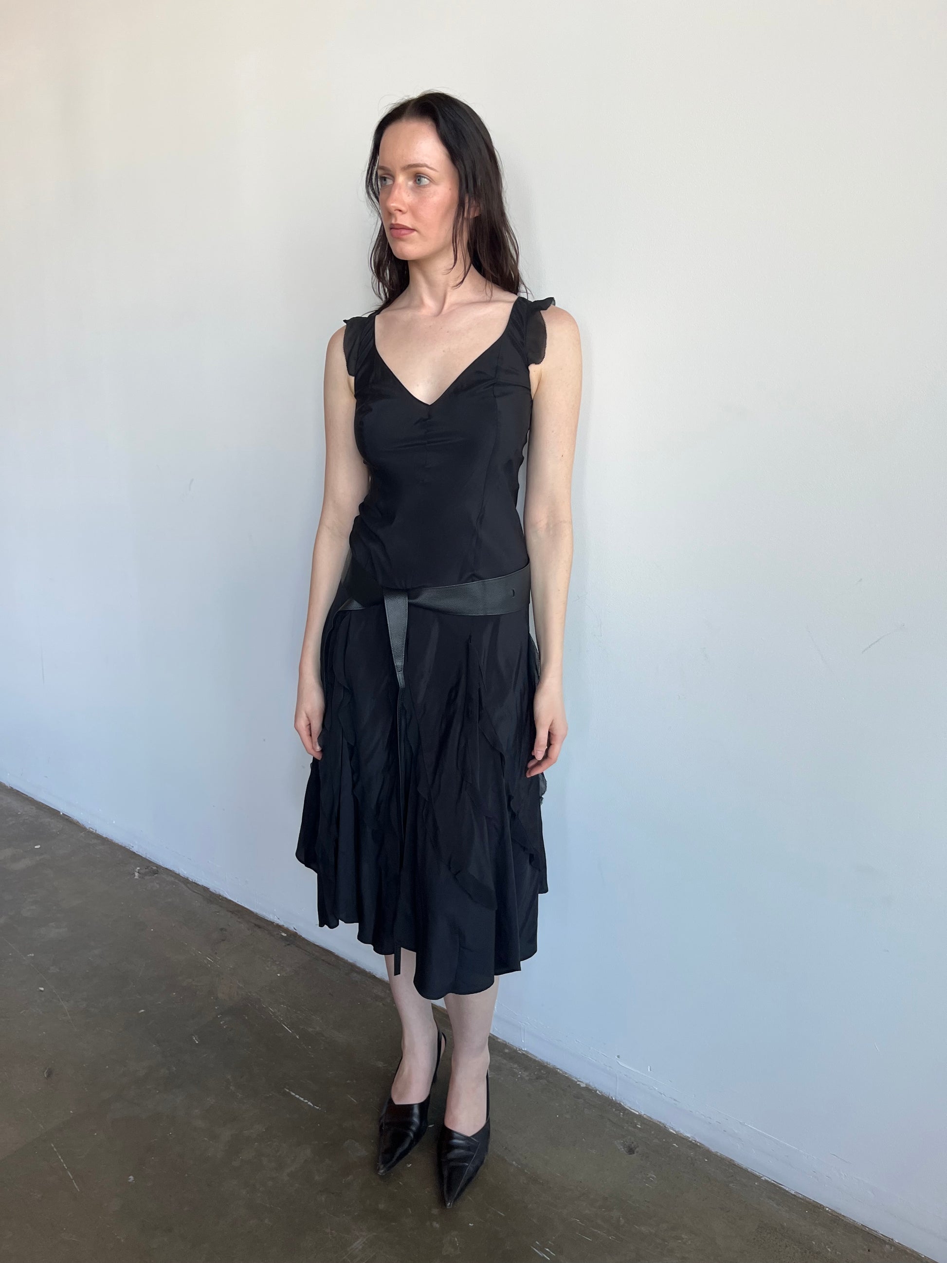 -Flattering V-neckline with ruffle-trim shoulder detail