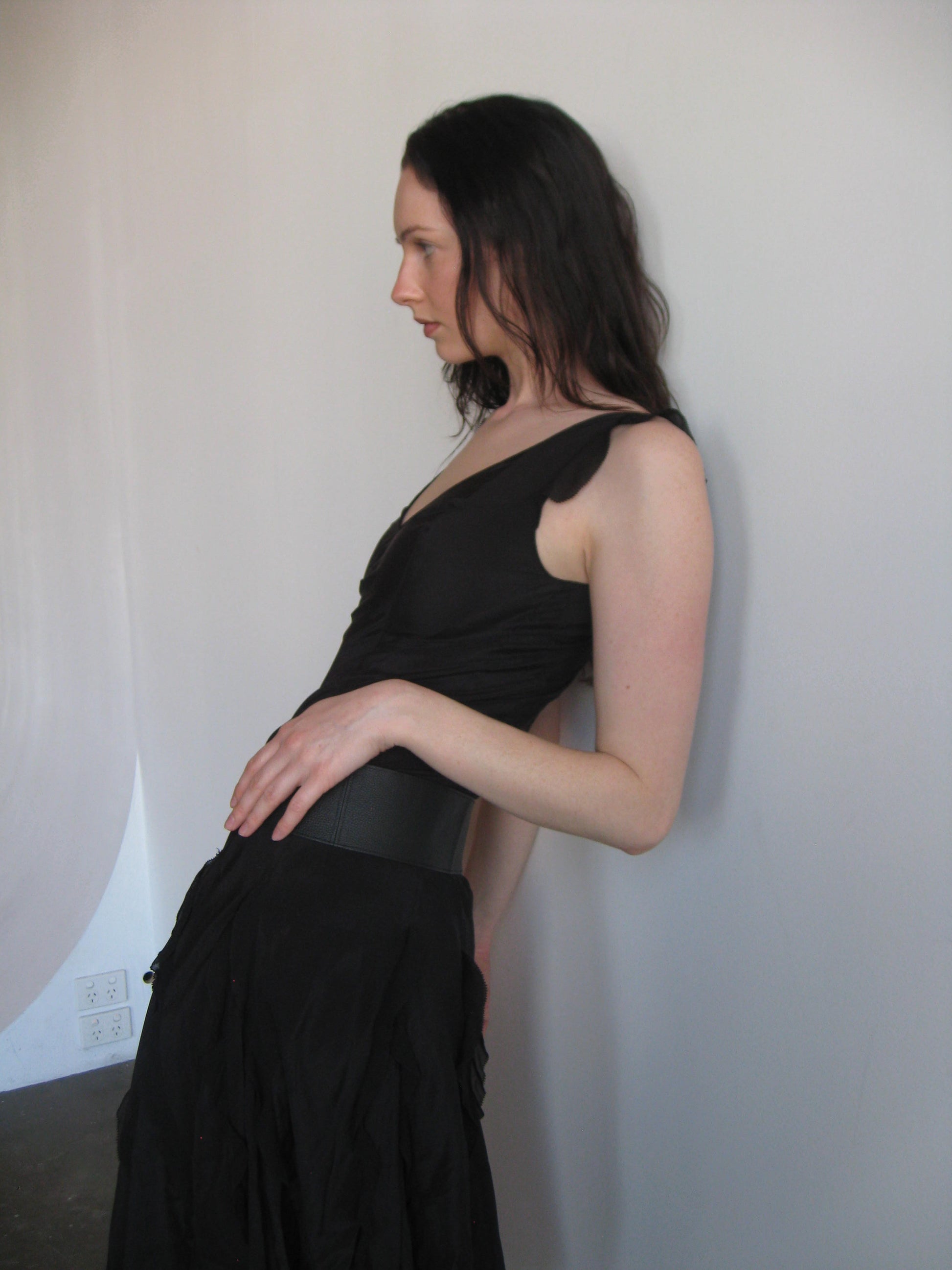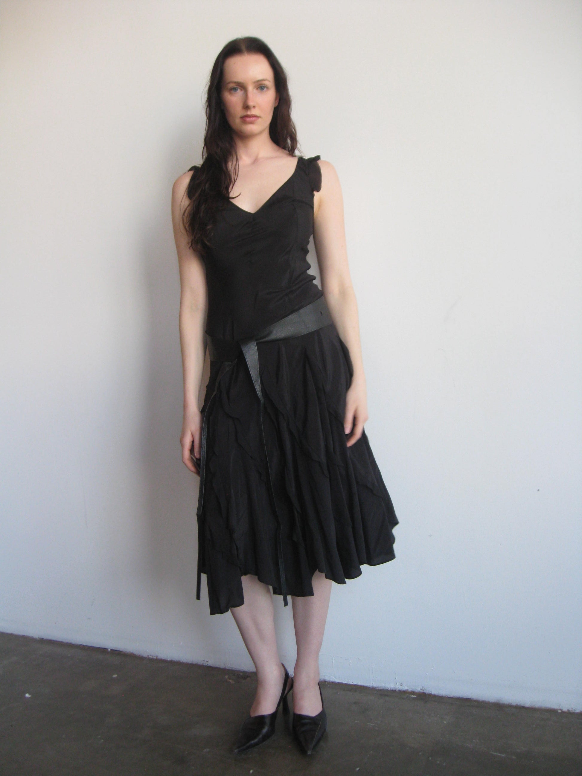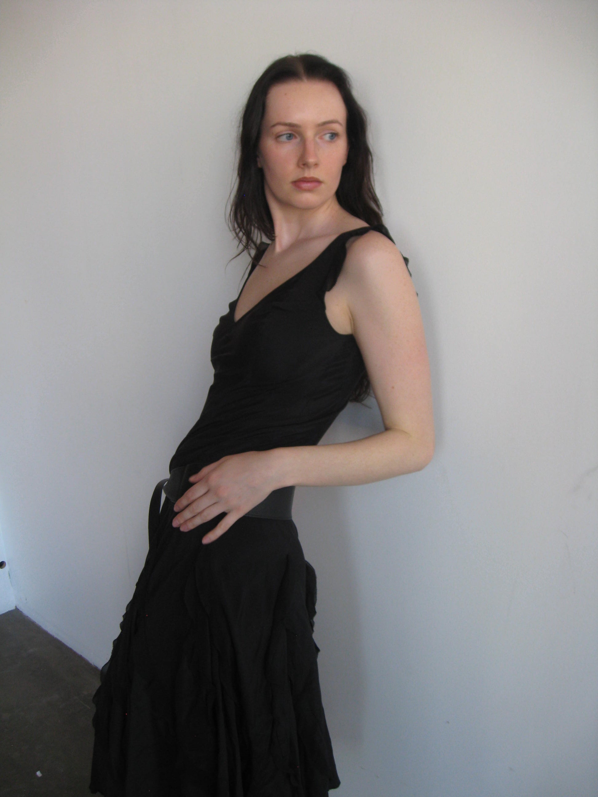 -Flattering V-neckline with ruffle-trim shoulder detail