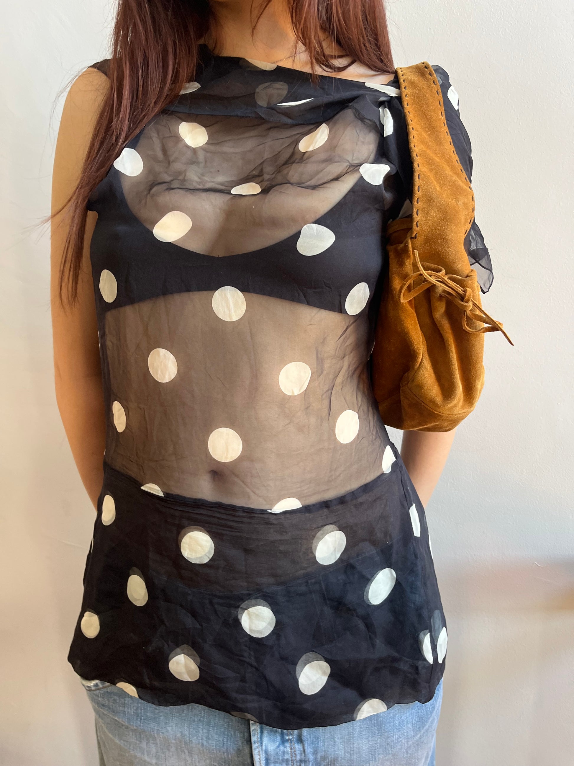 -Sheer silk with polka dot prints