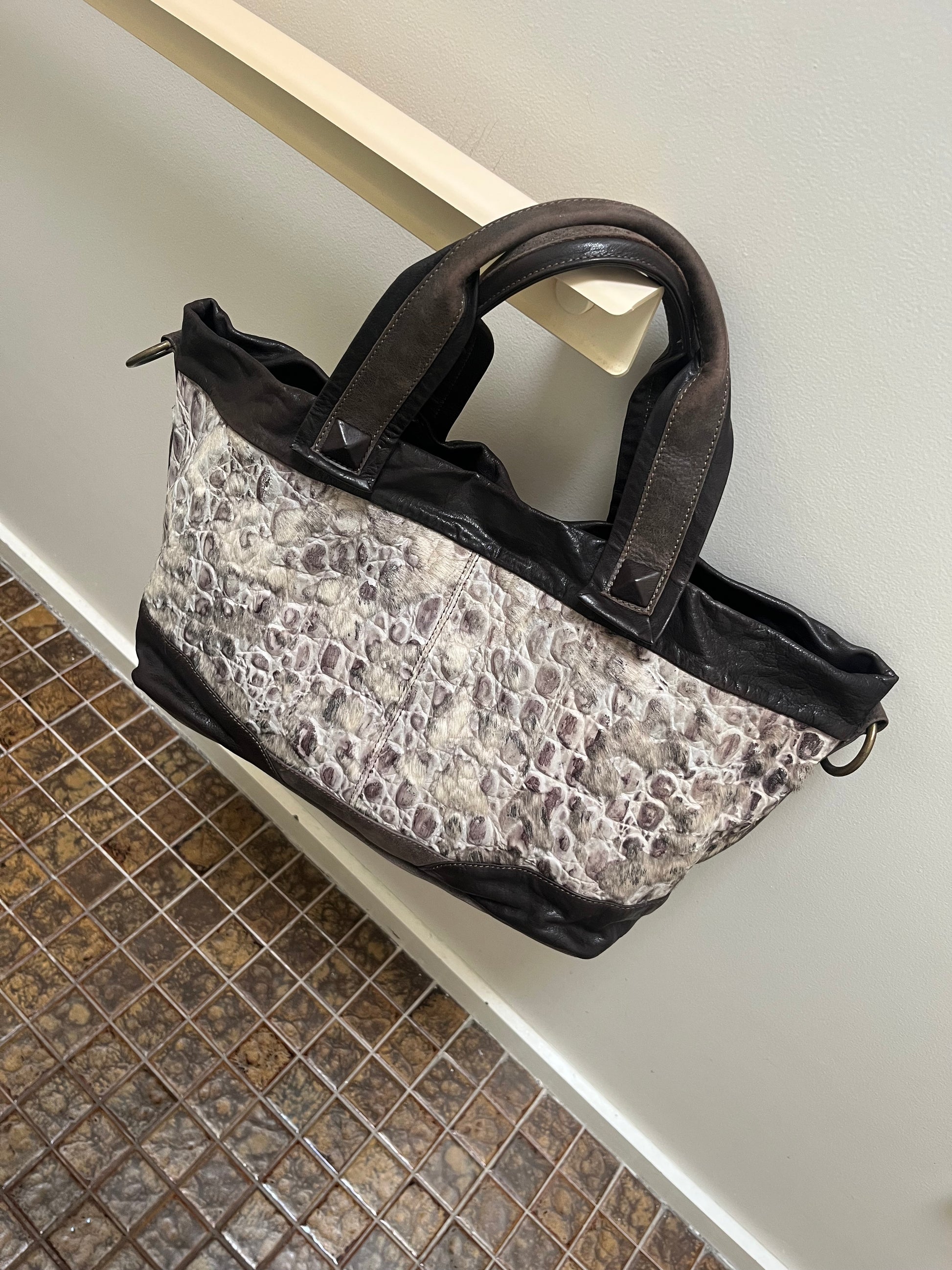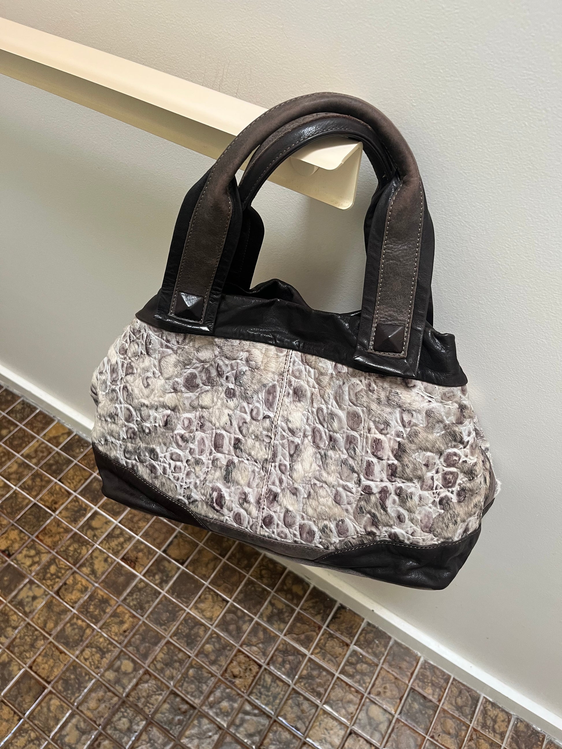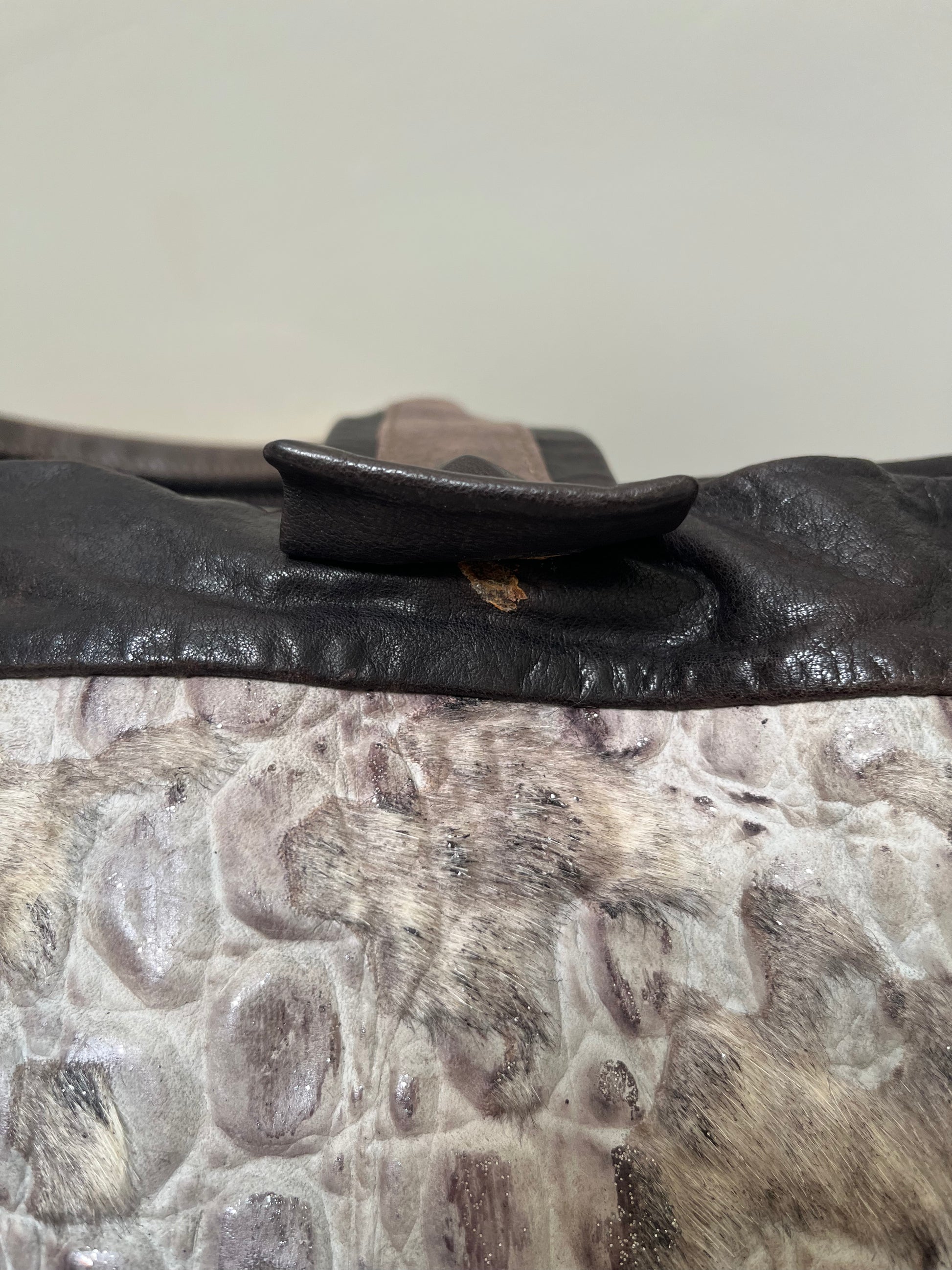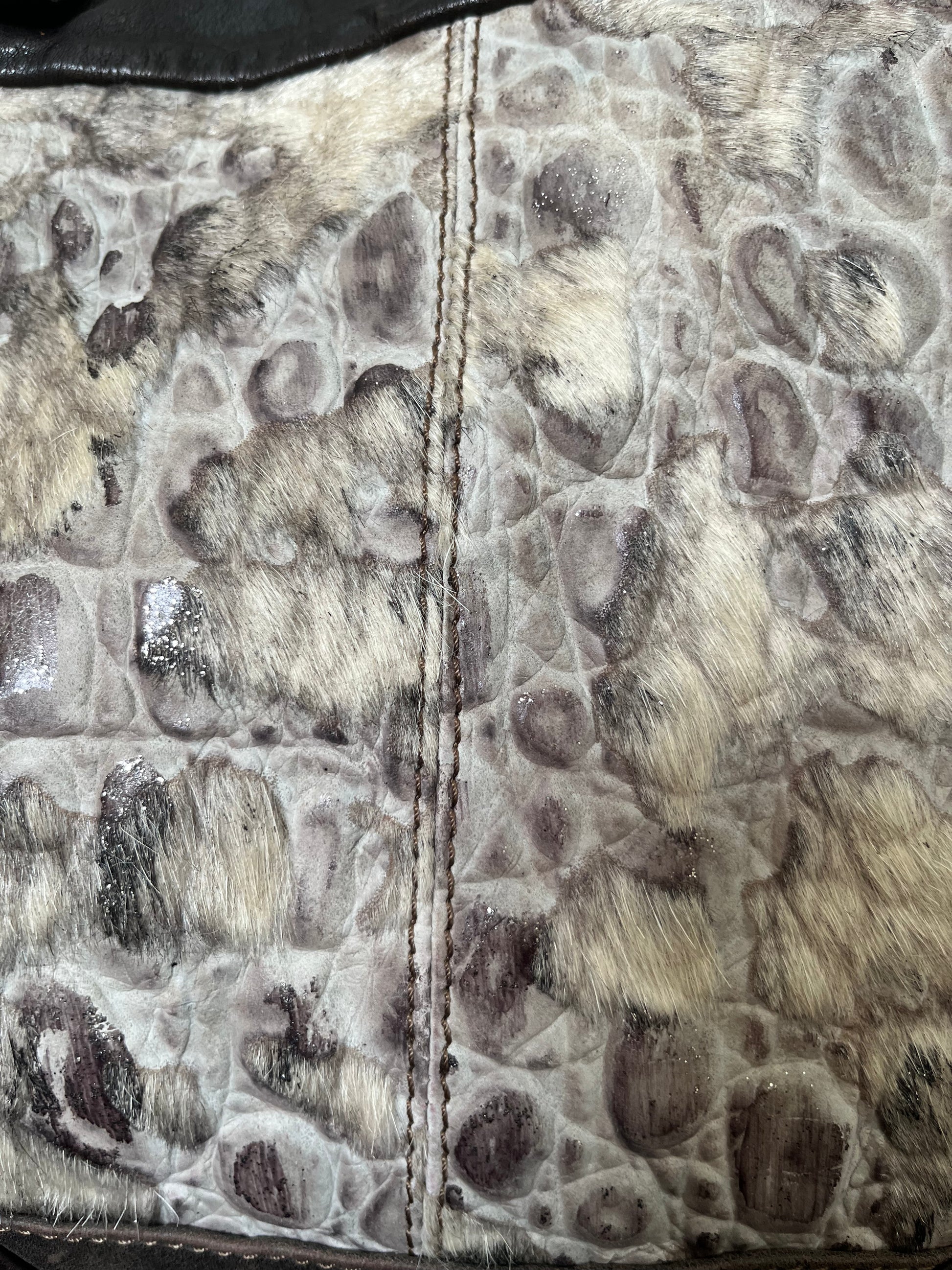 -Pebbled leather with pony hair inserts