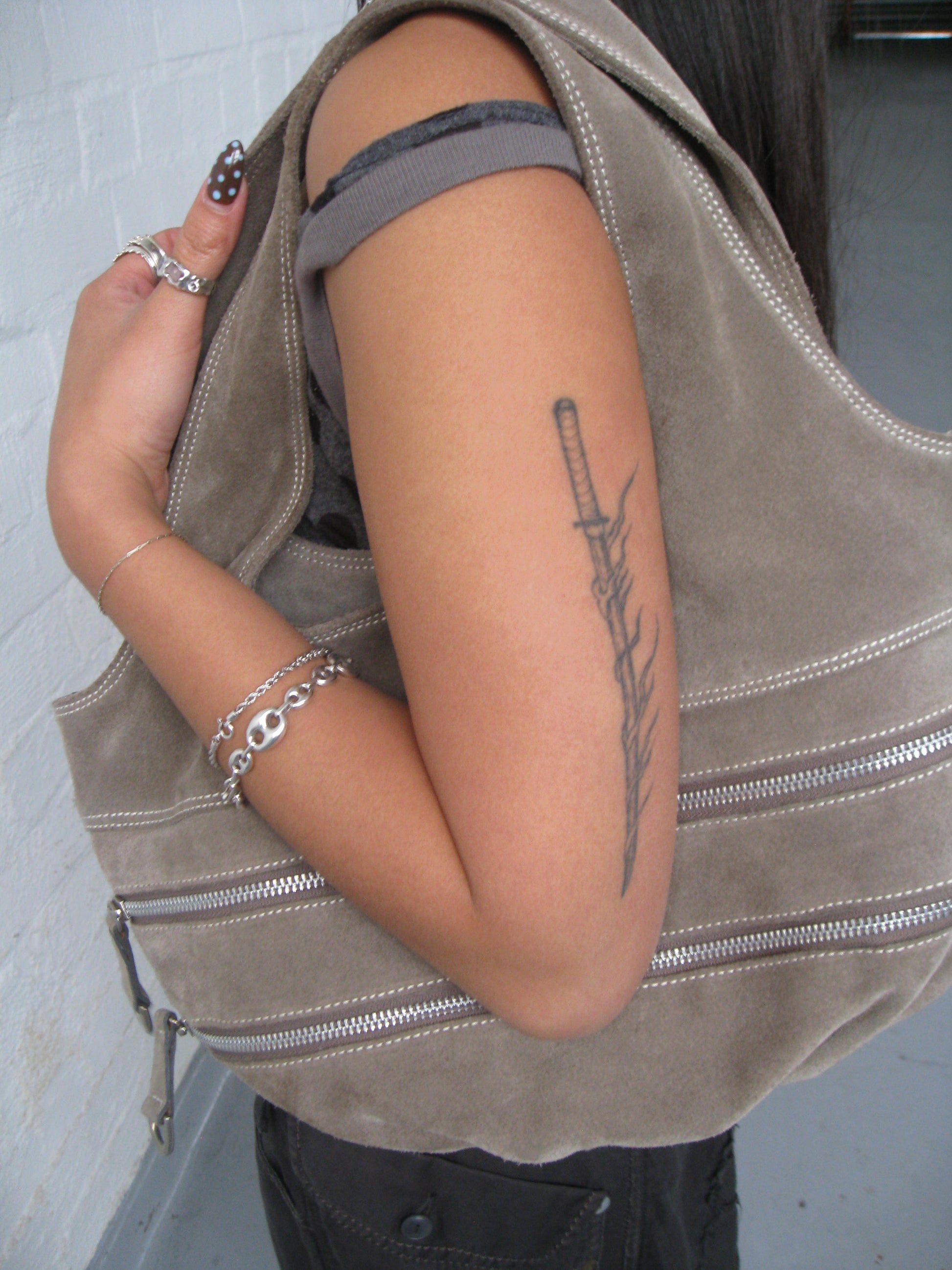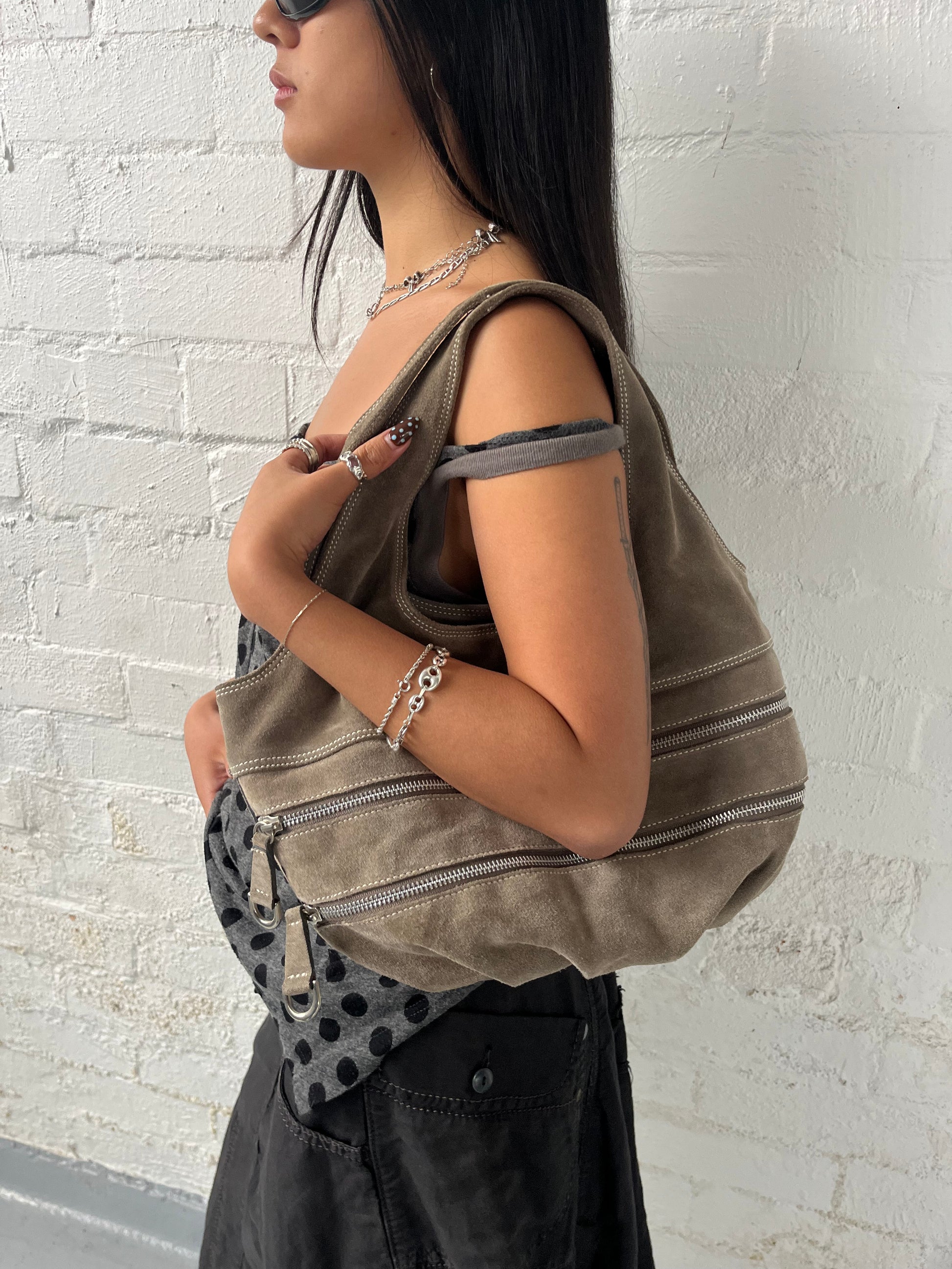 MATERIAL: Suede exterior, light wear to the suede consistent with age and use.