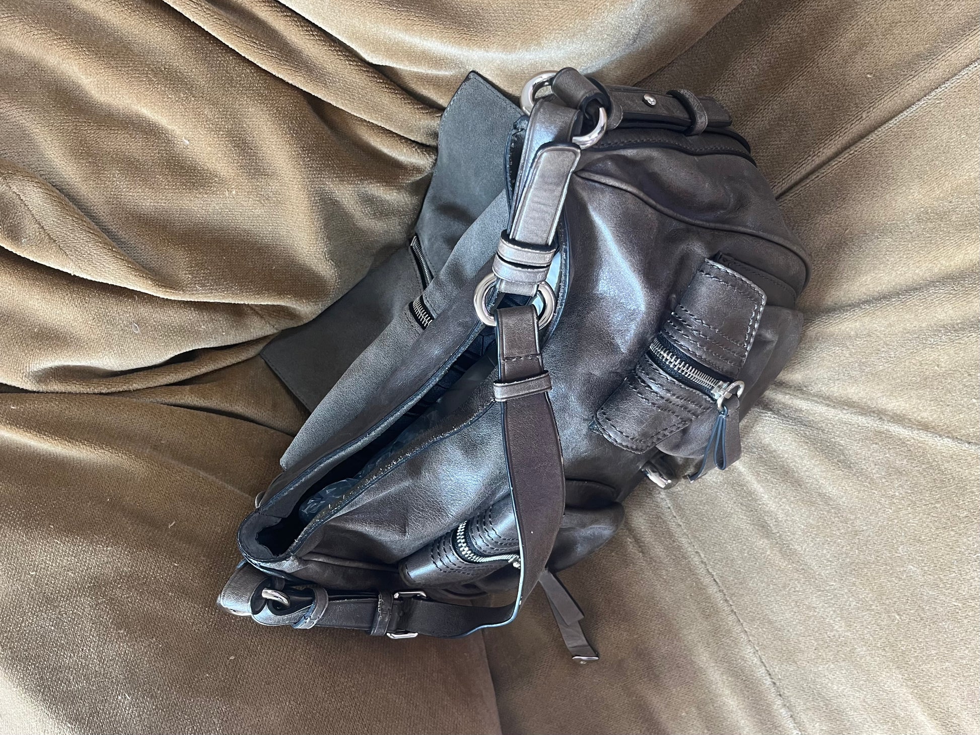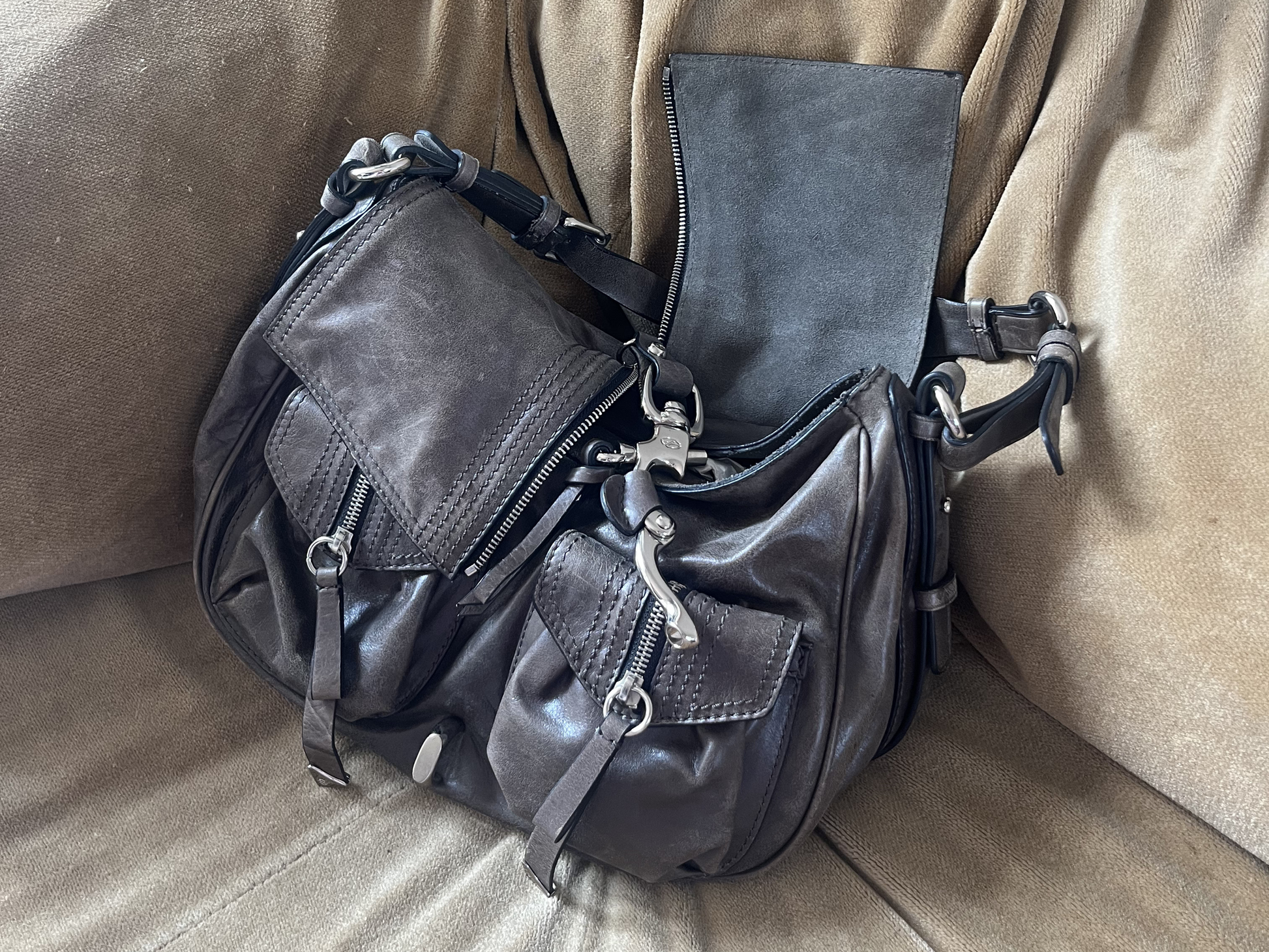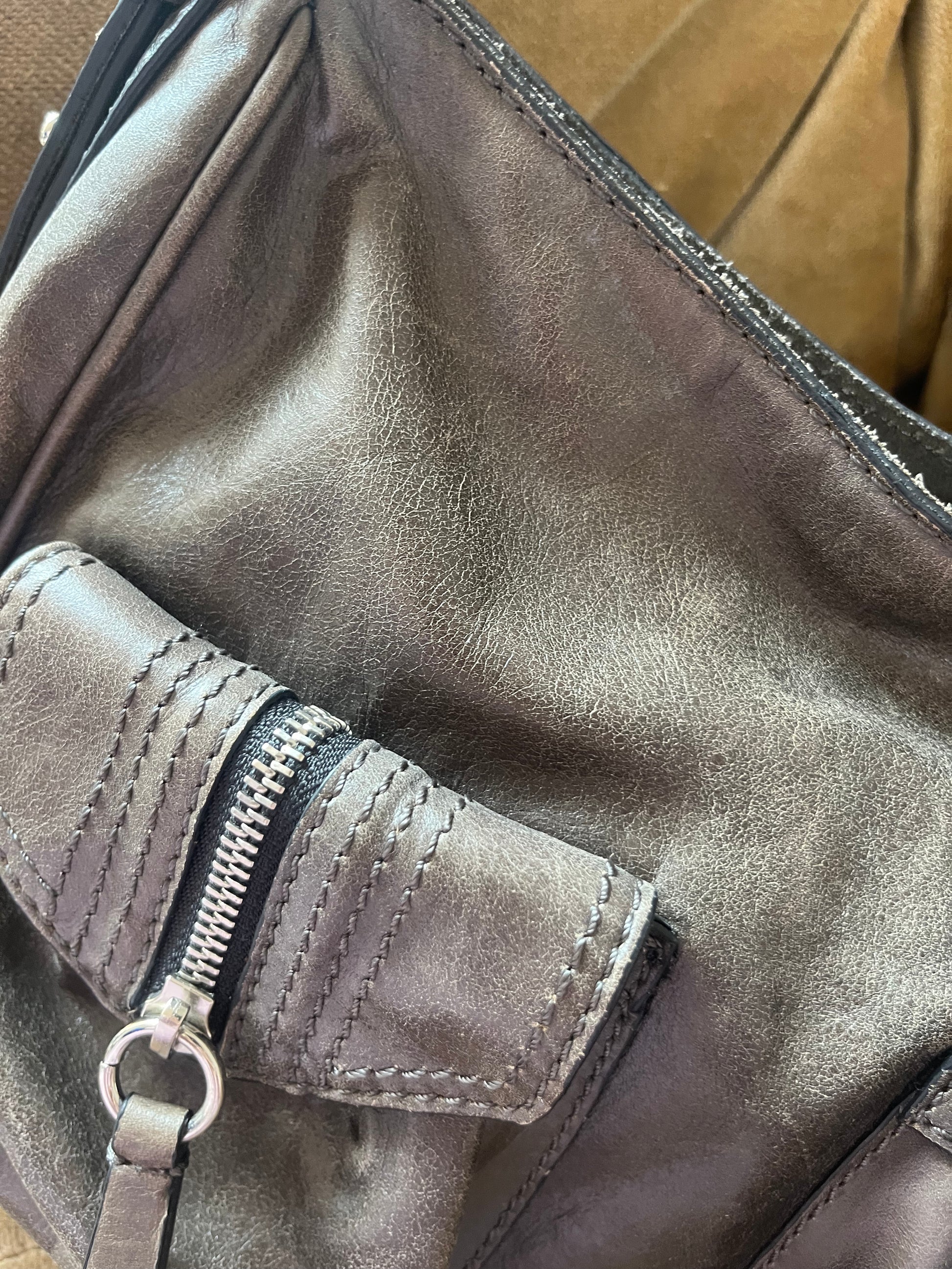MATERIAL: Grey leather exterior