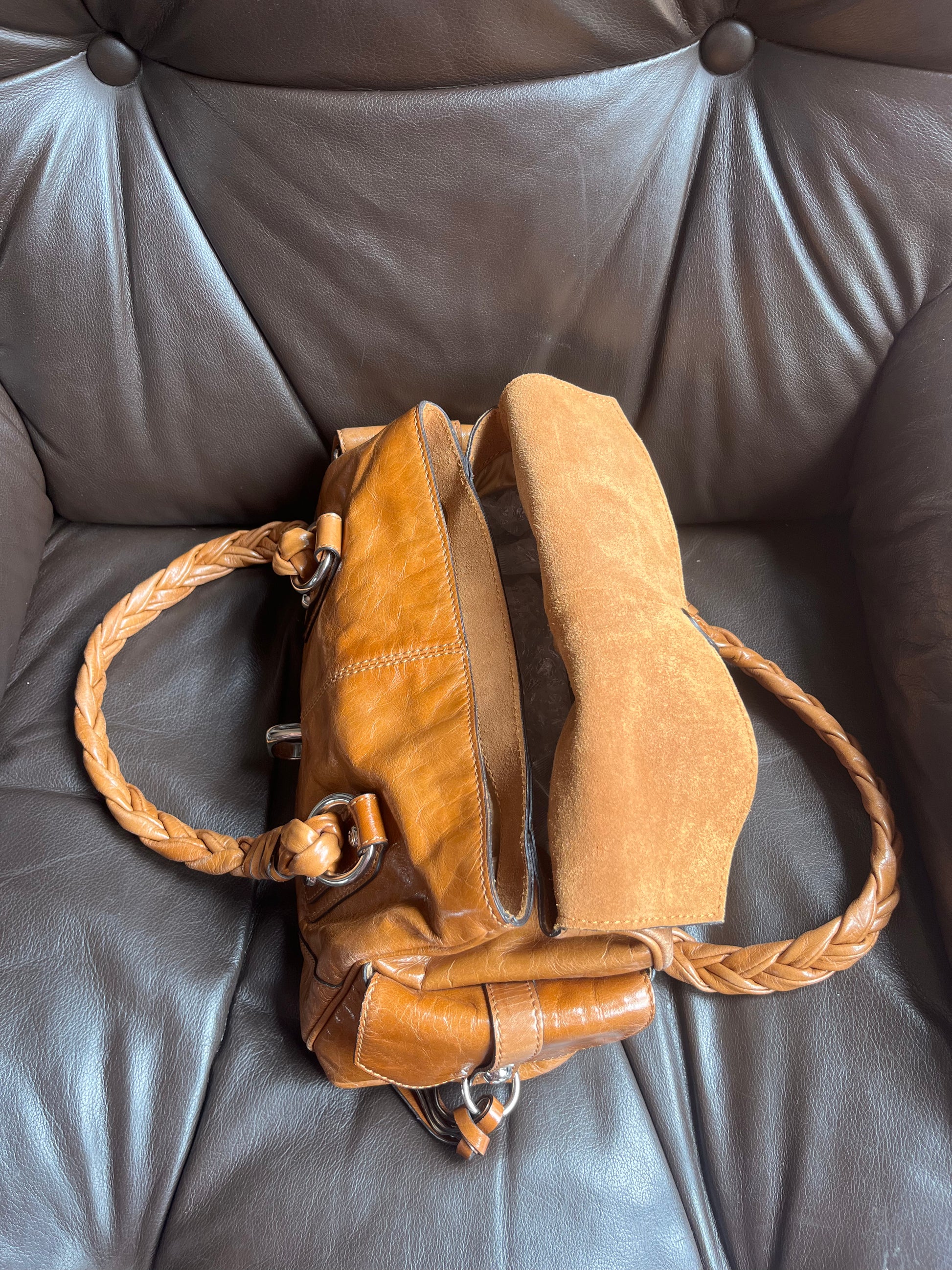 CONDITION: In overall good condition. The leather tassels have peeled away from lining as seen images. Could be fixed by a cobbler.