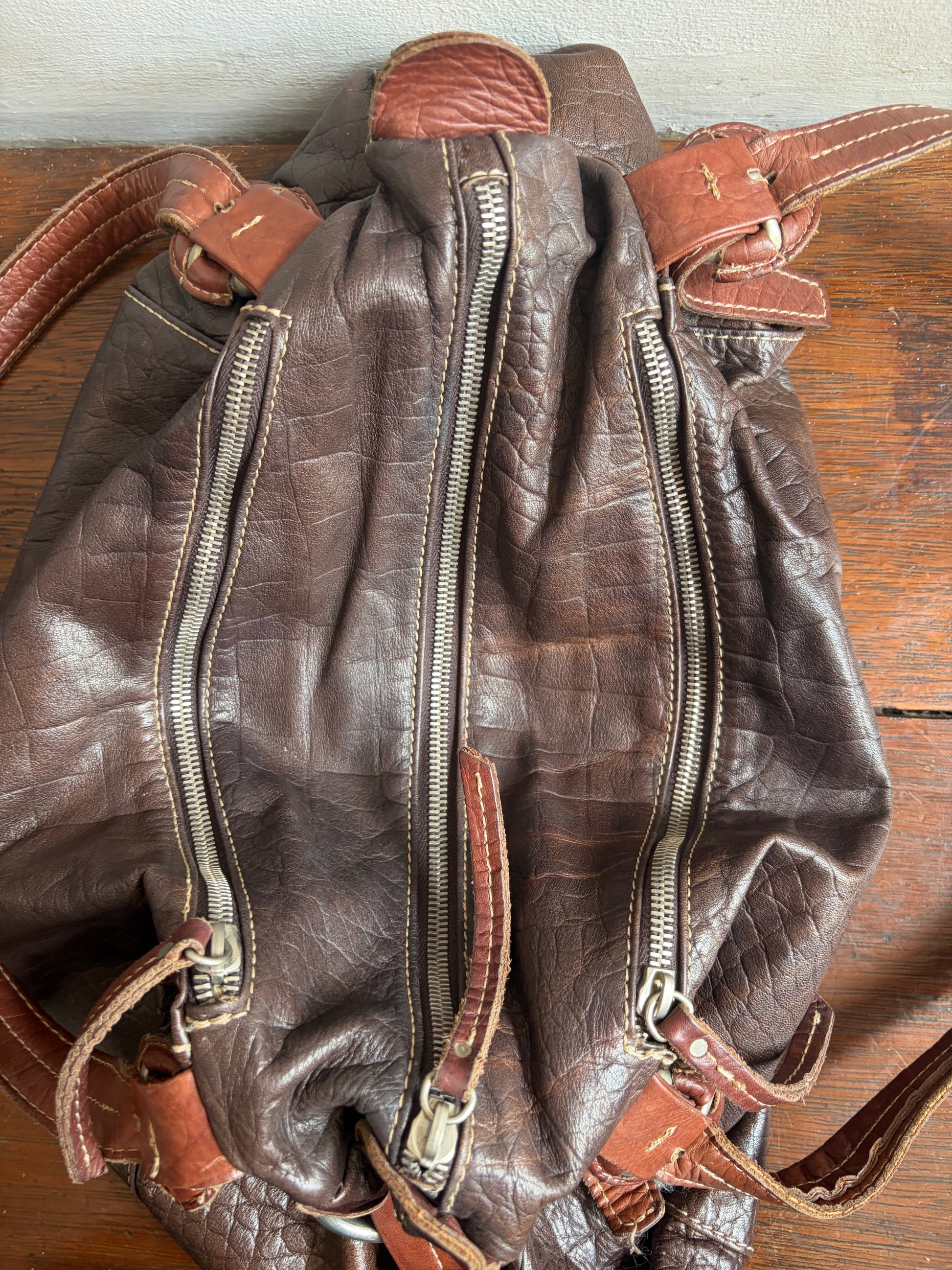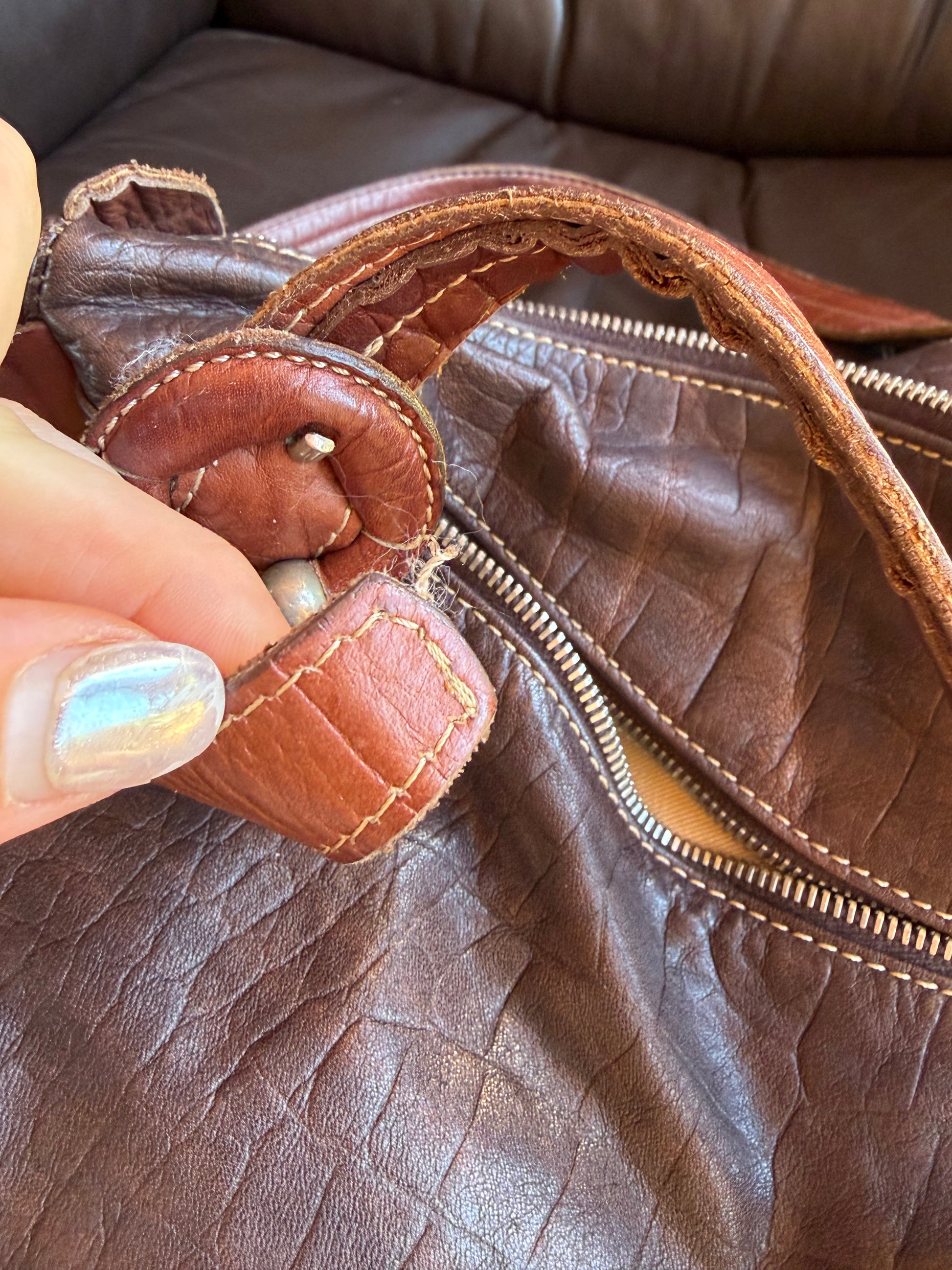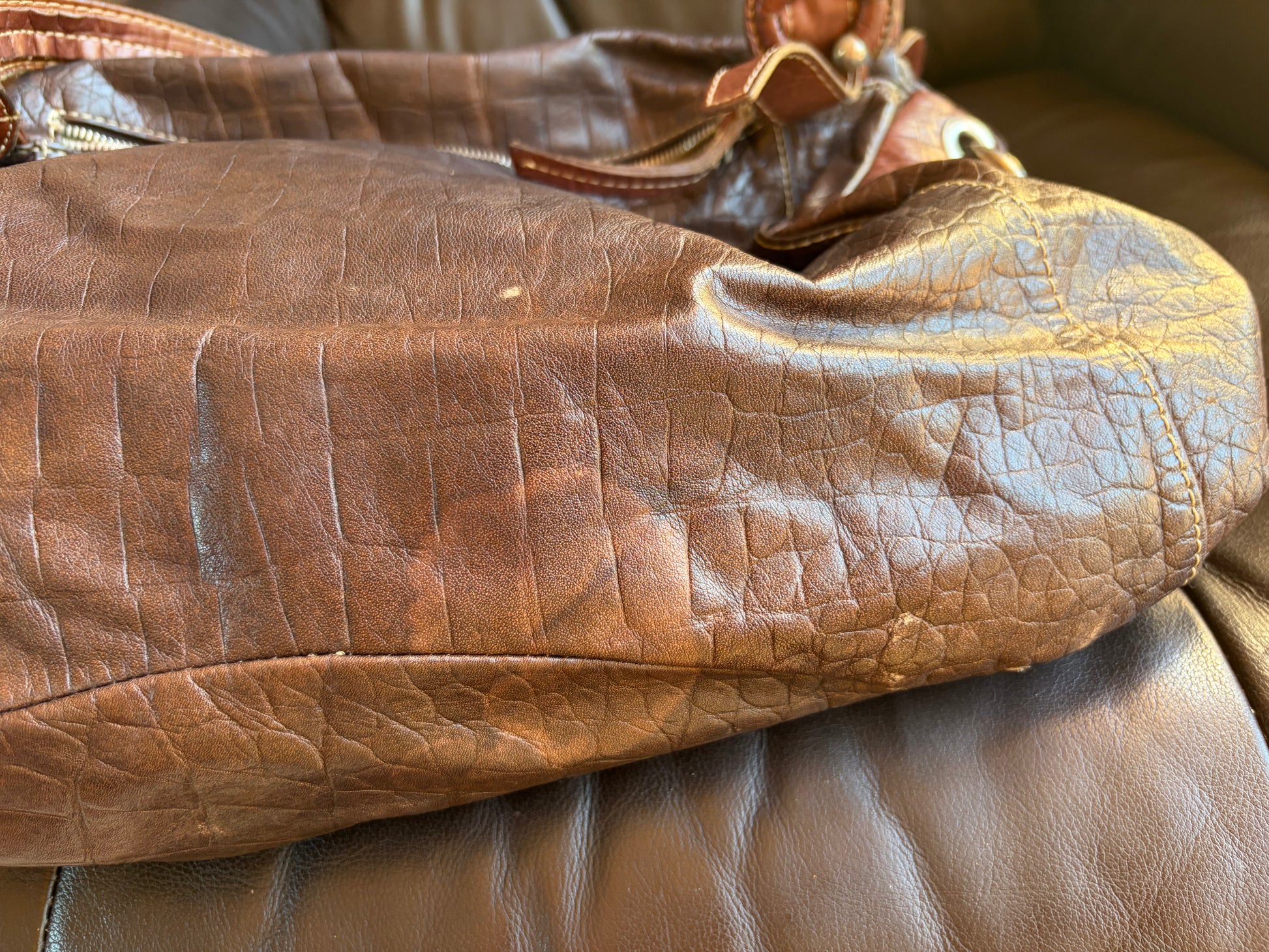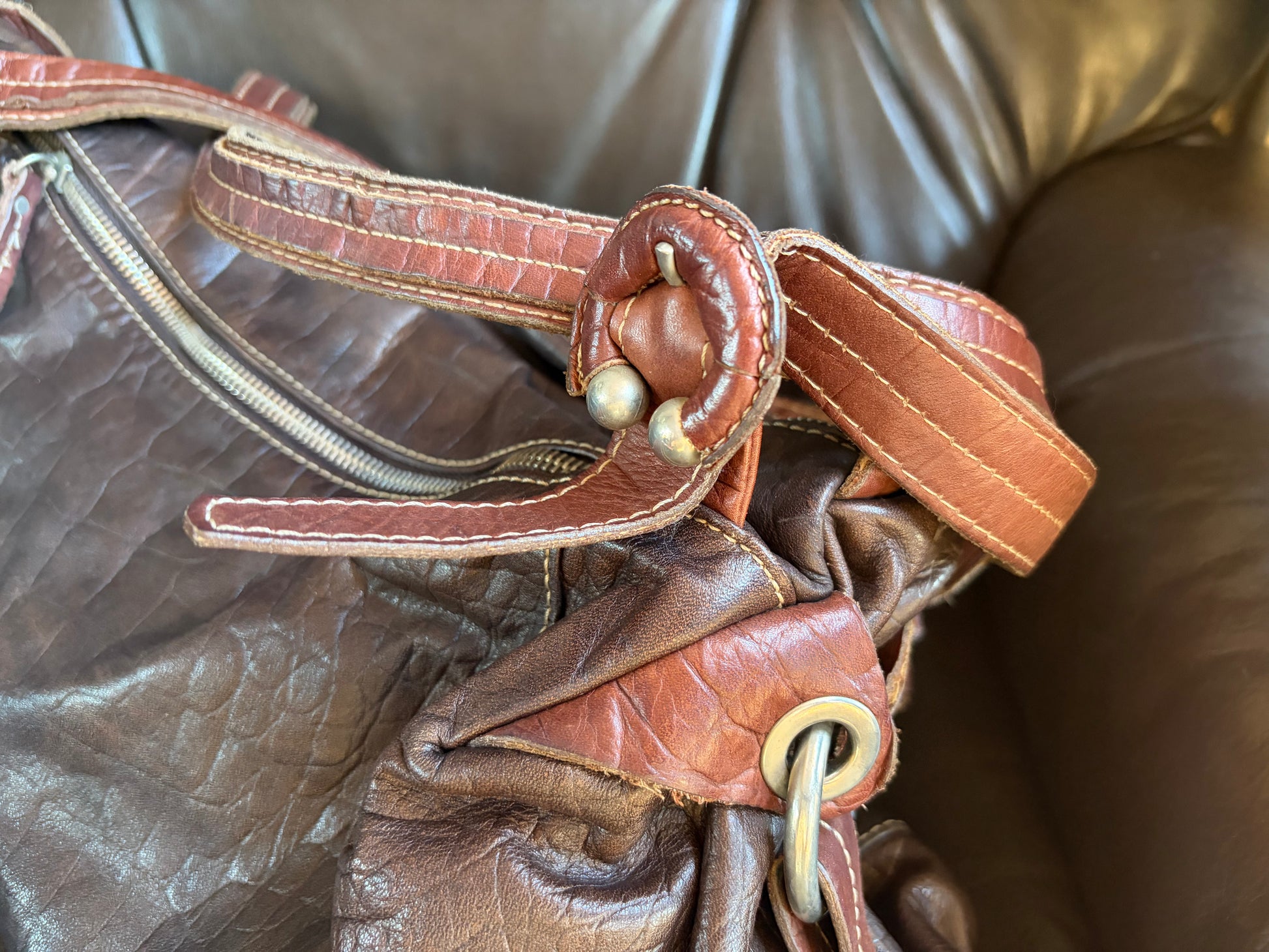 -Contrast lighter brown straps