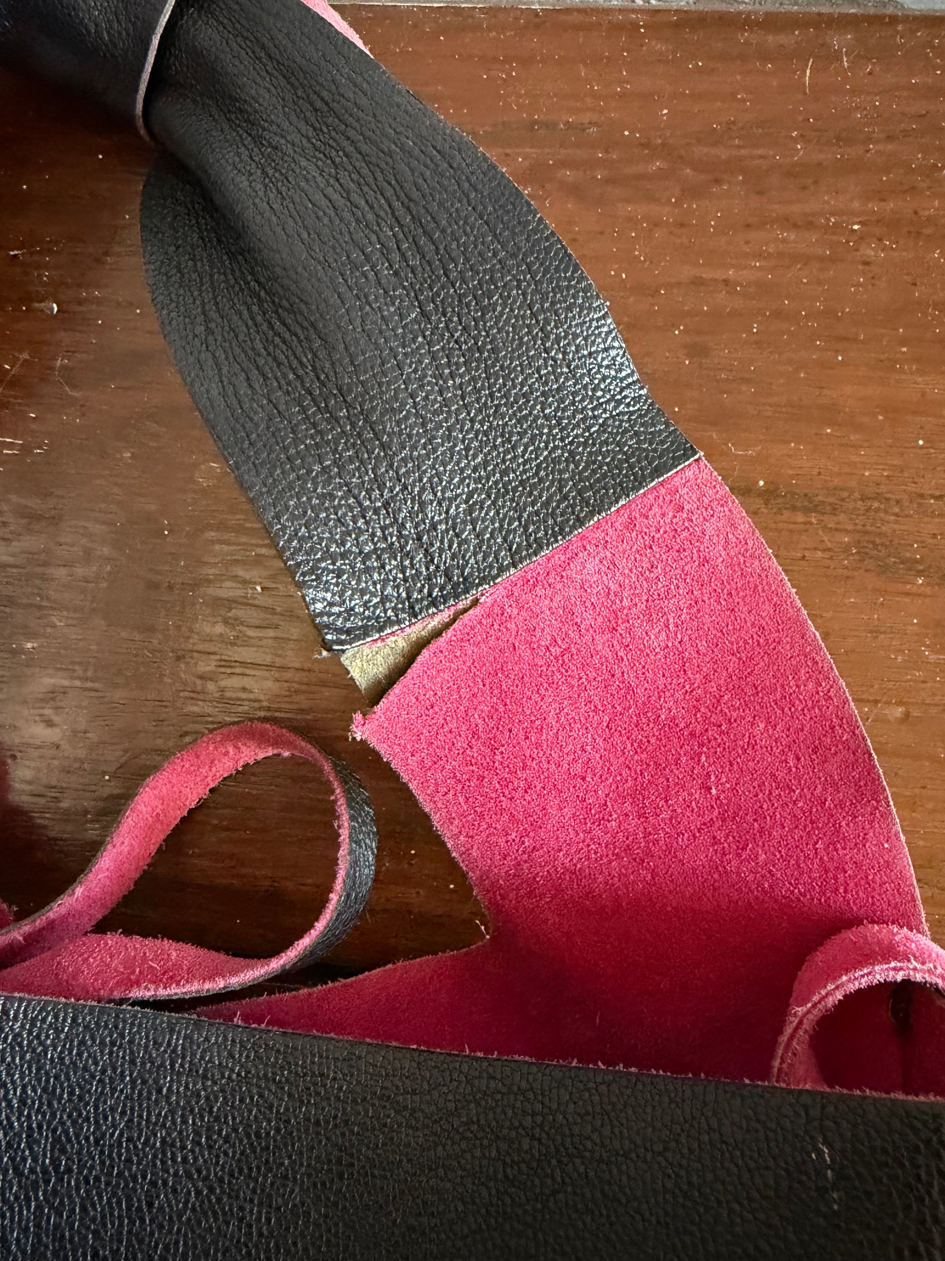 -Contrast pink suede interior