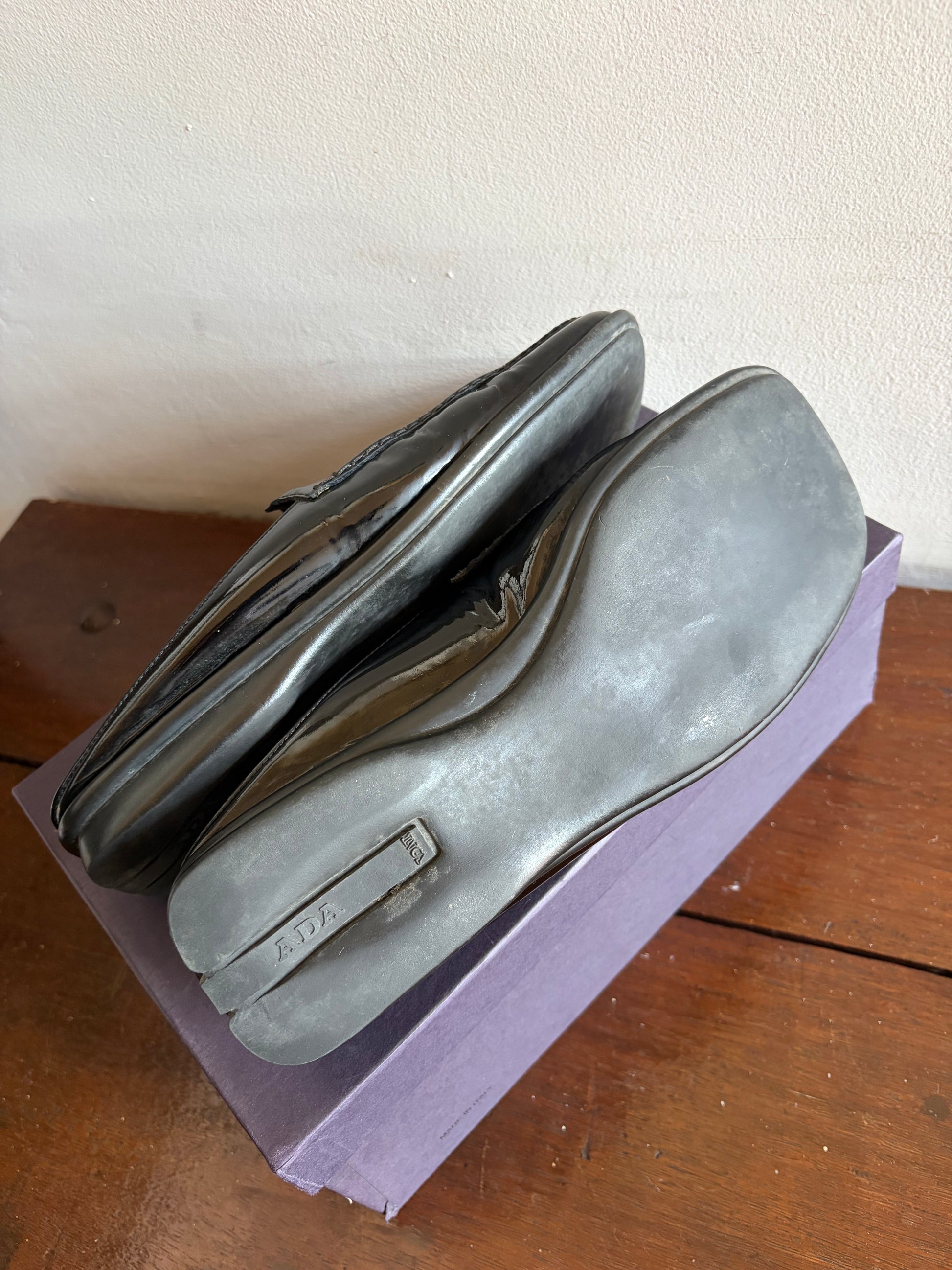 In overall good condition. Soles are slightly worn down, please refer to imagery.
