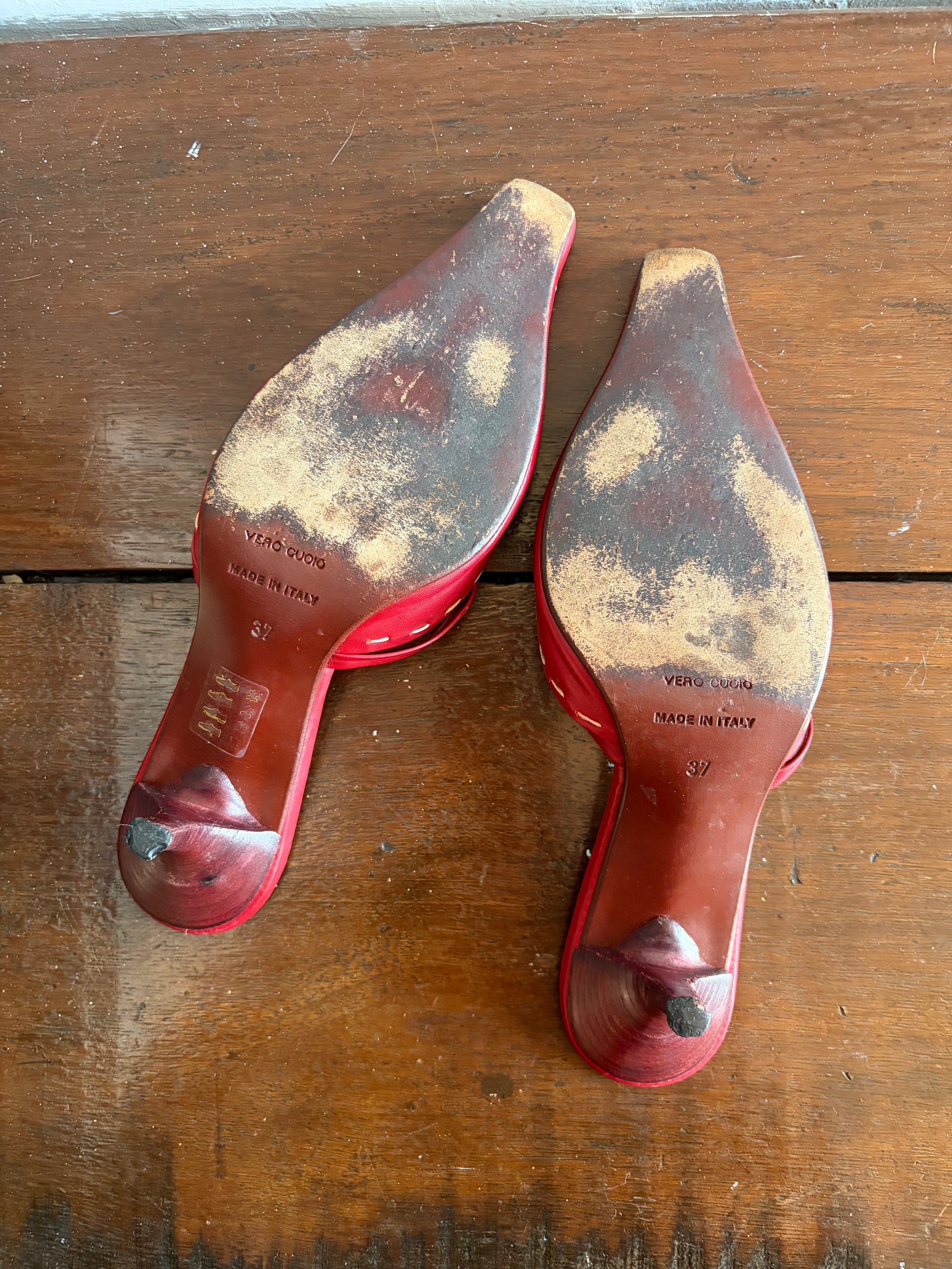 In fair condition overall, please refer to the imagery for condition as thread has come loose. Soles and heel caps are worn, please refer to imagery for condition.