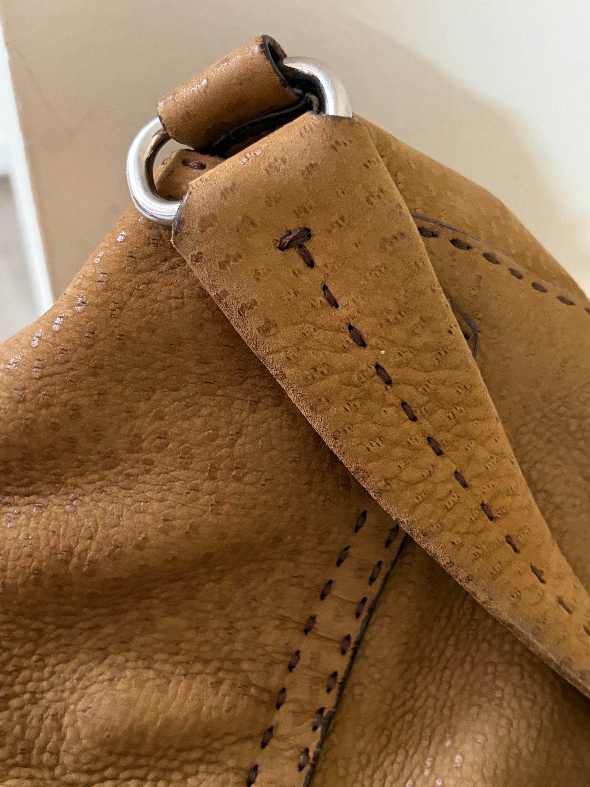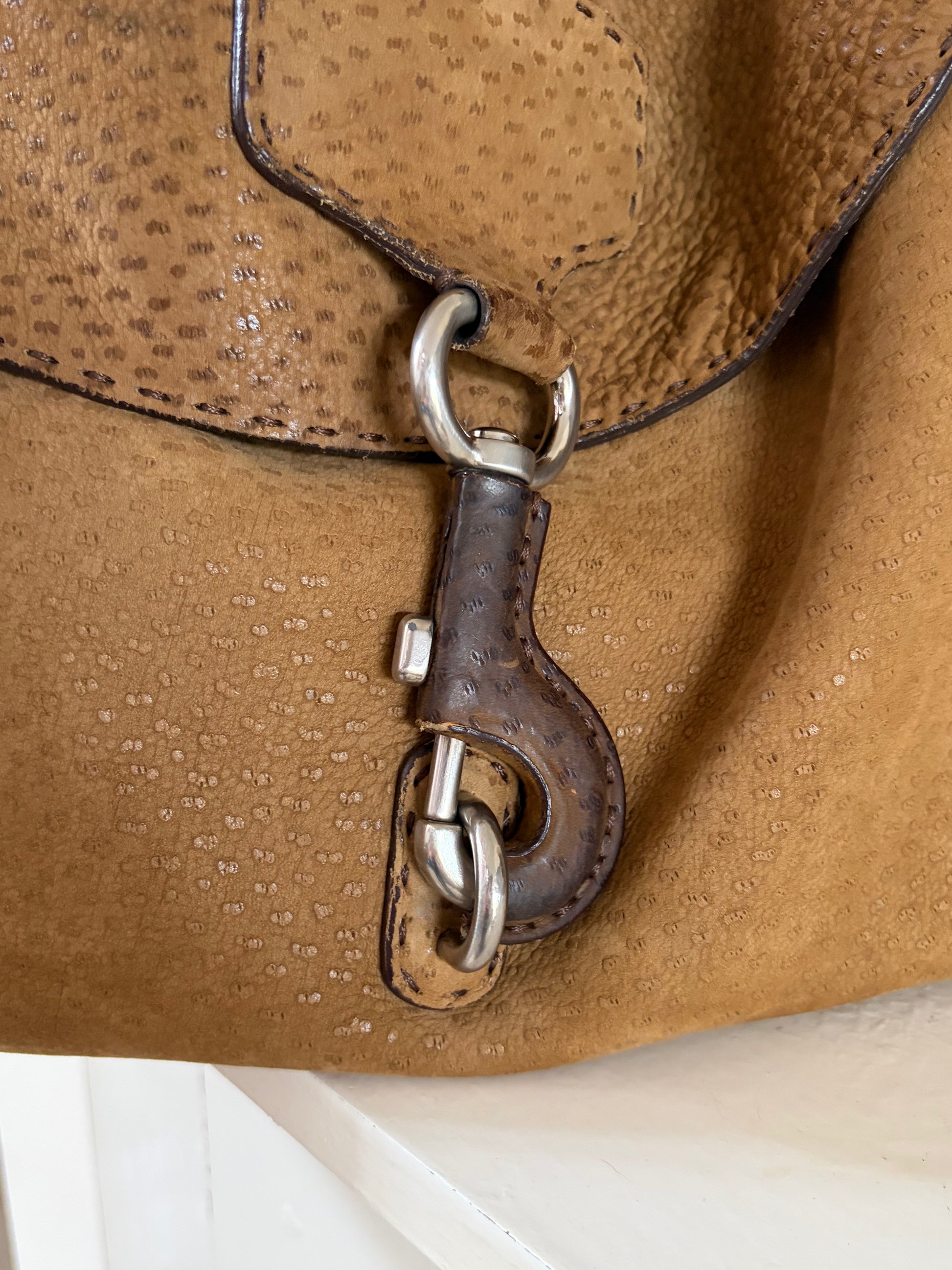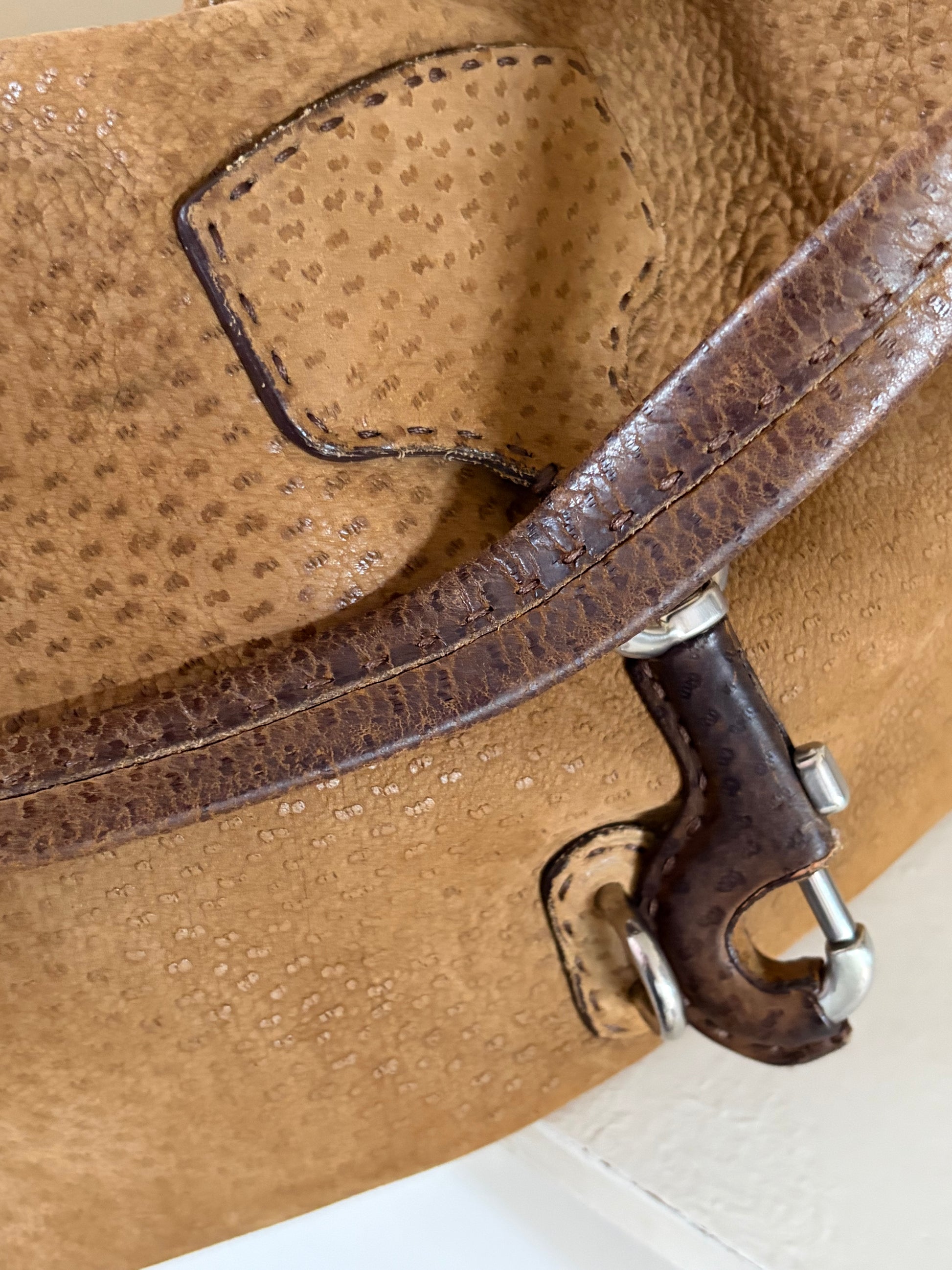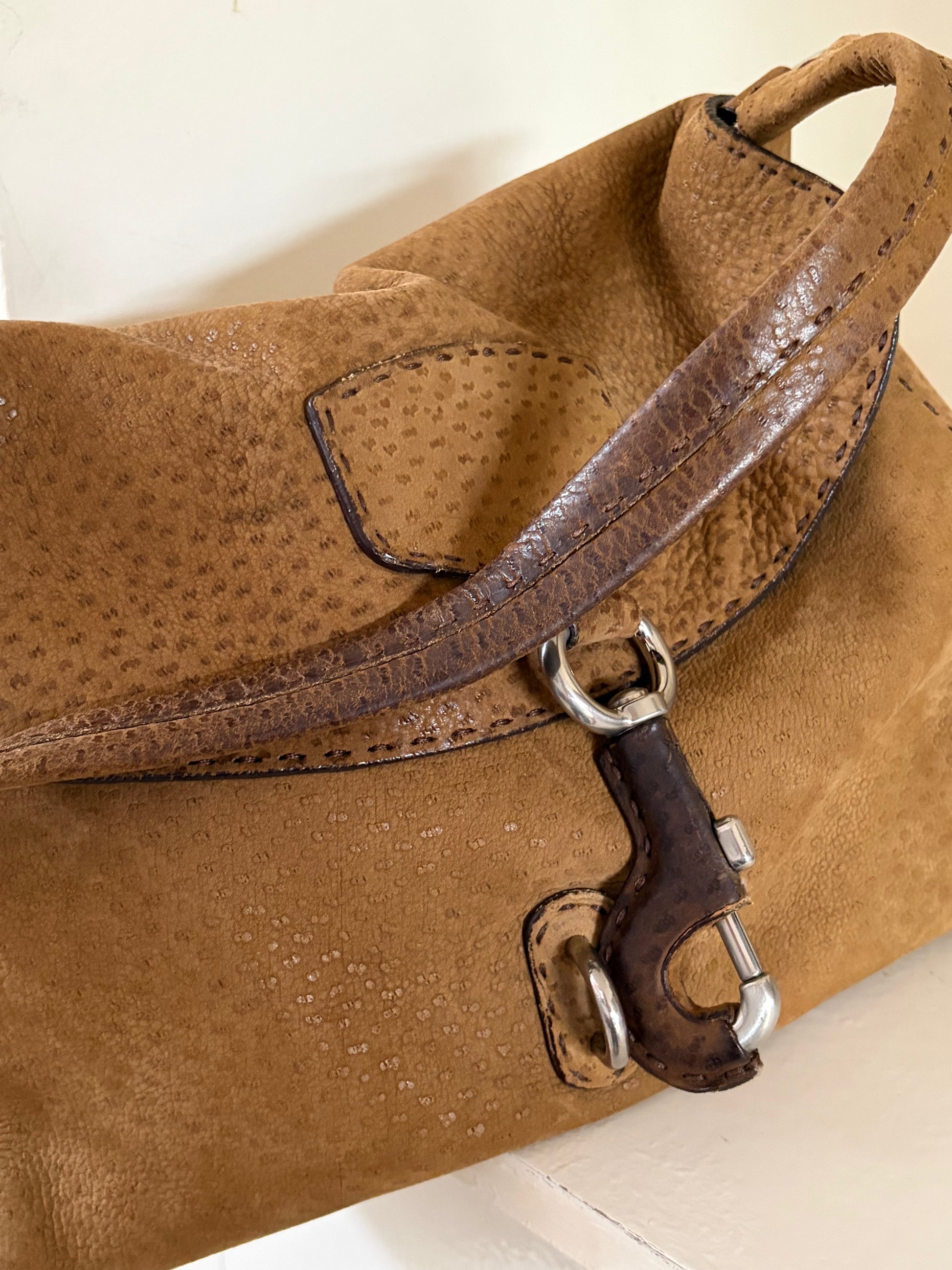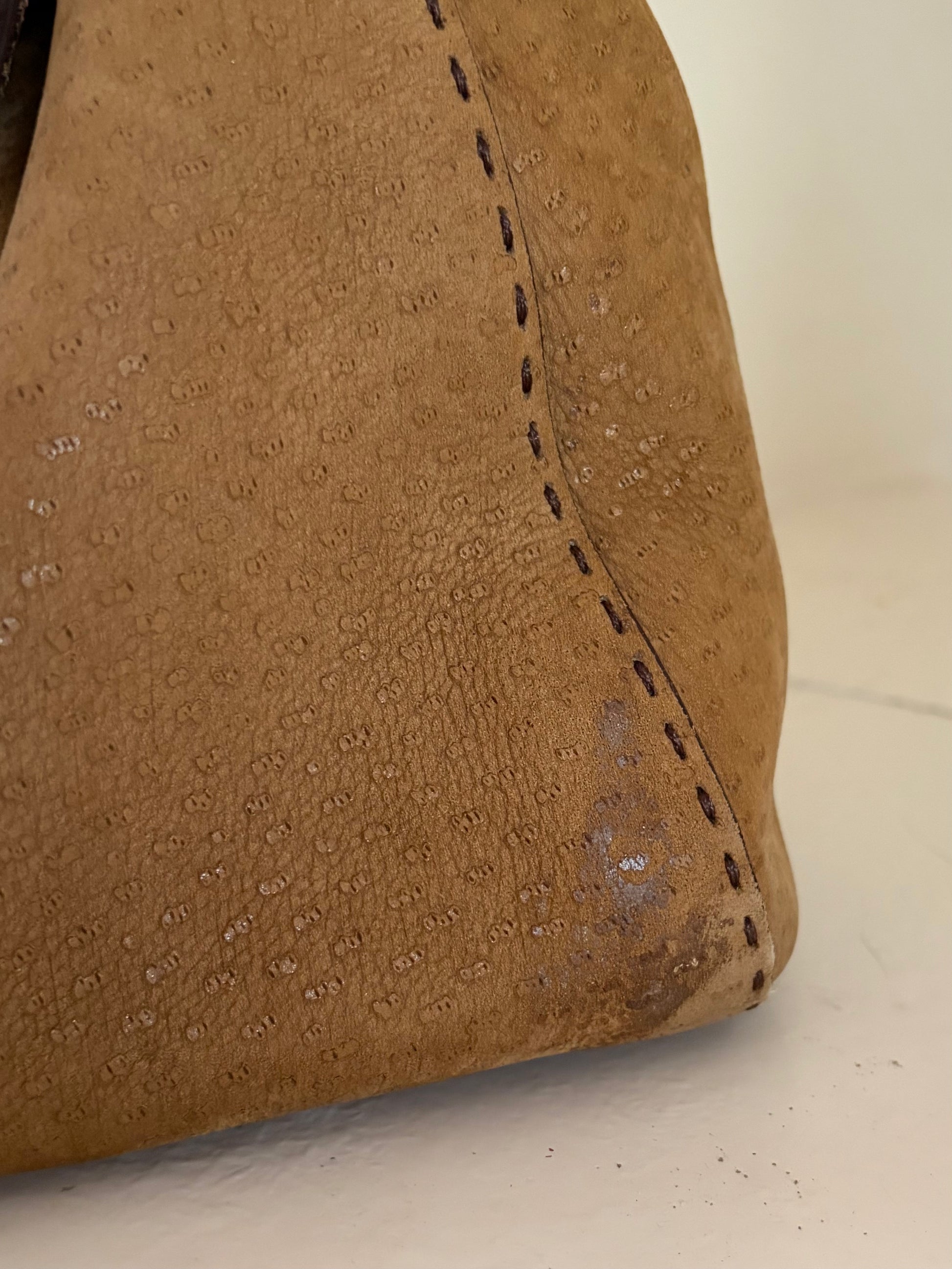 -Soft suede exterior with ostrich detailing