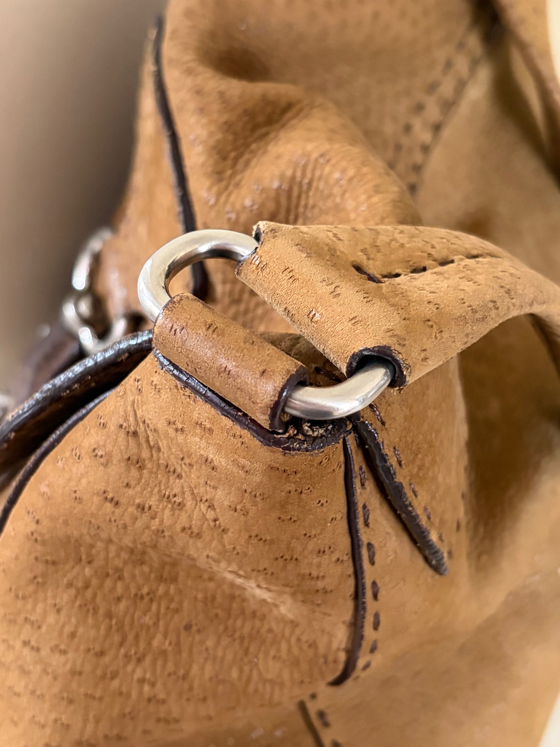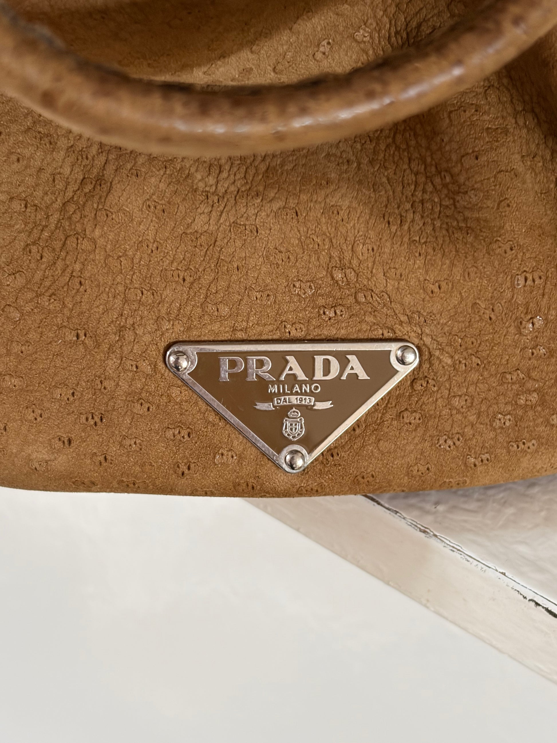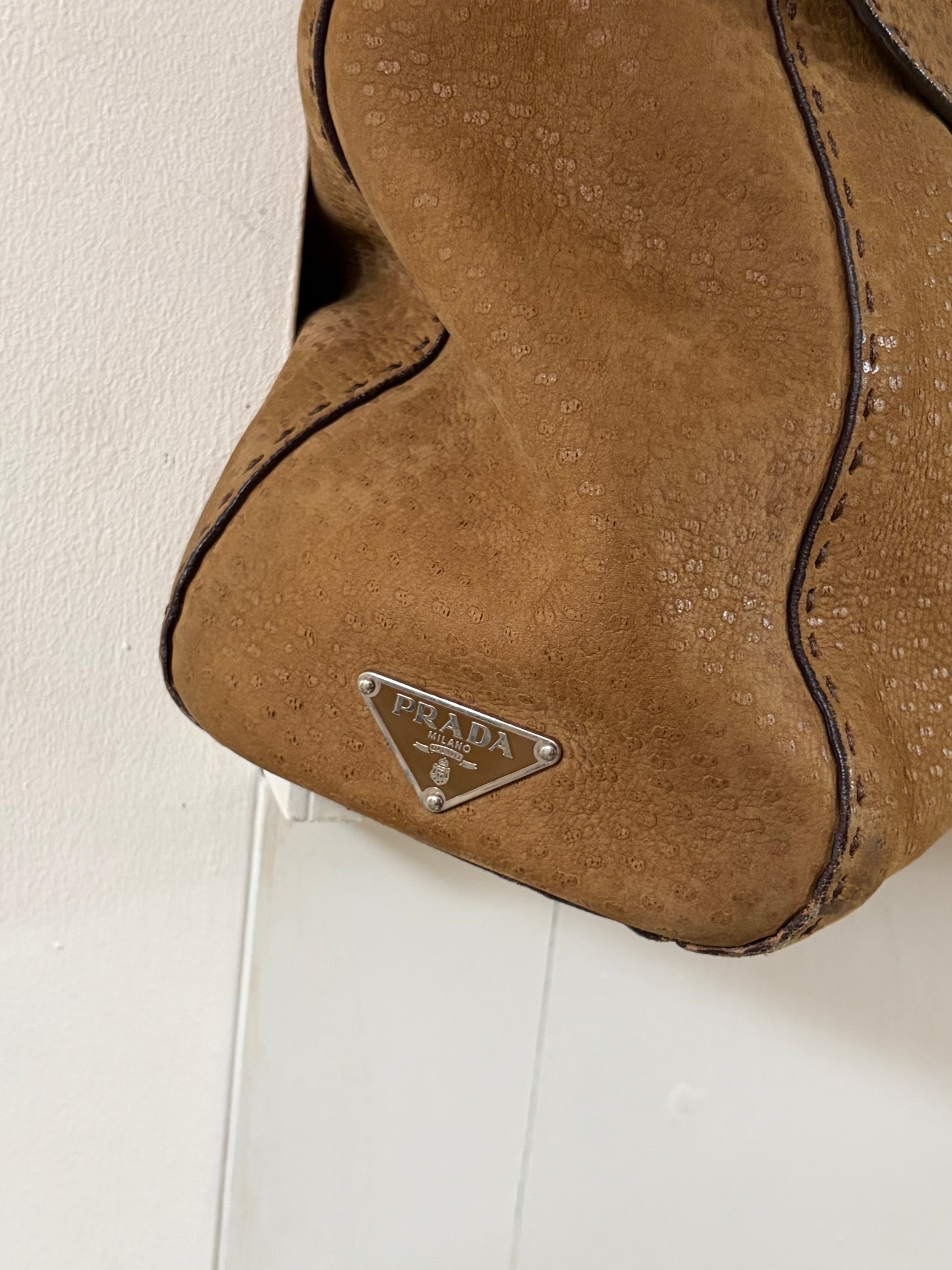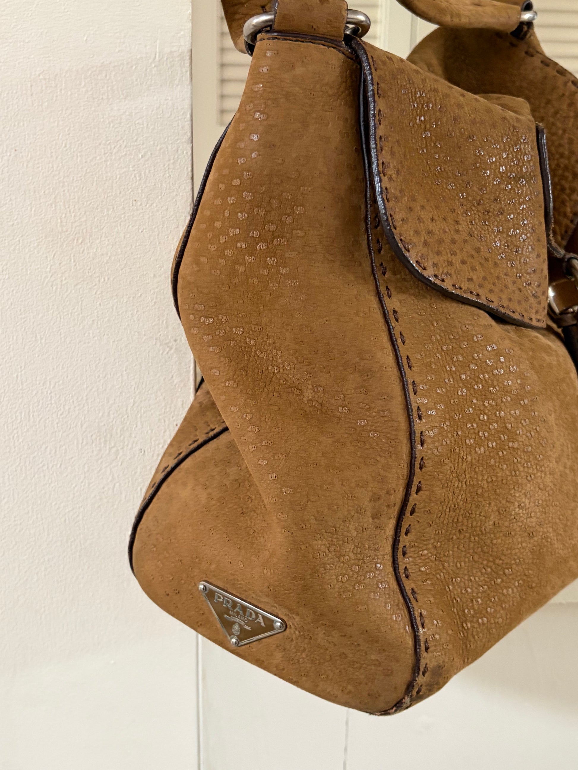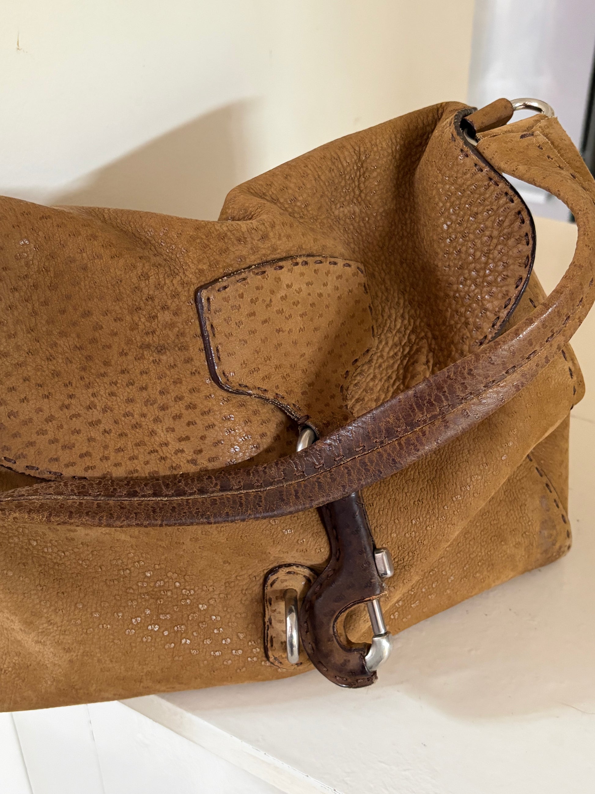 -Soft suede exterior with ostrich detailing