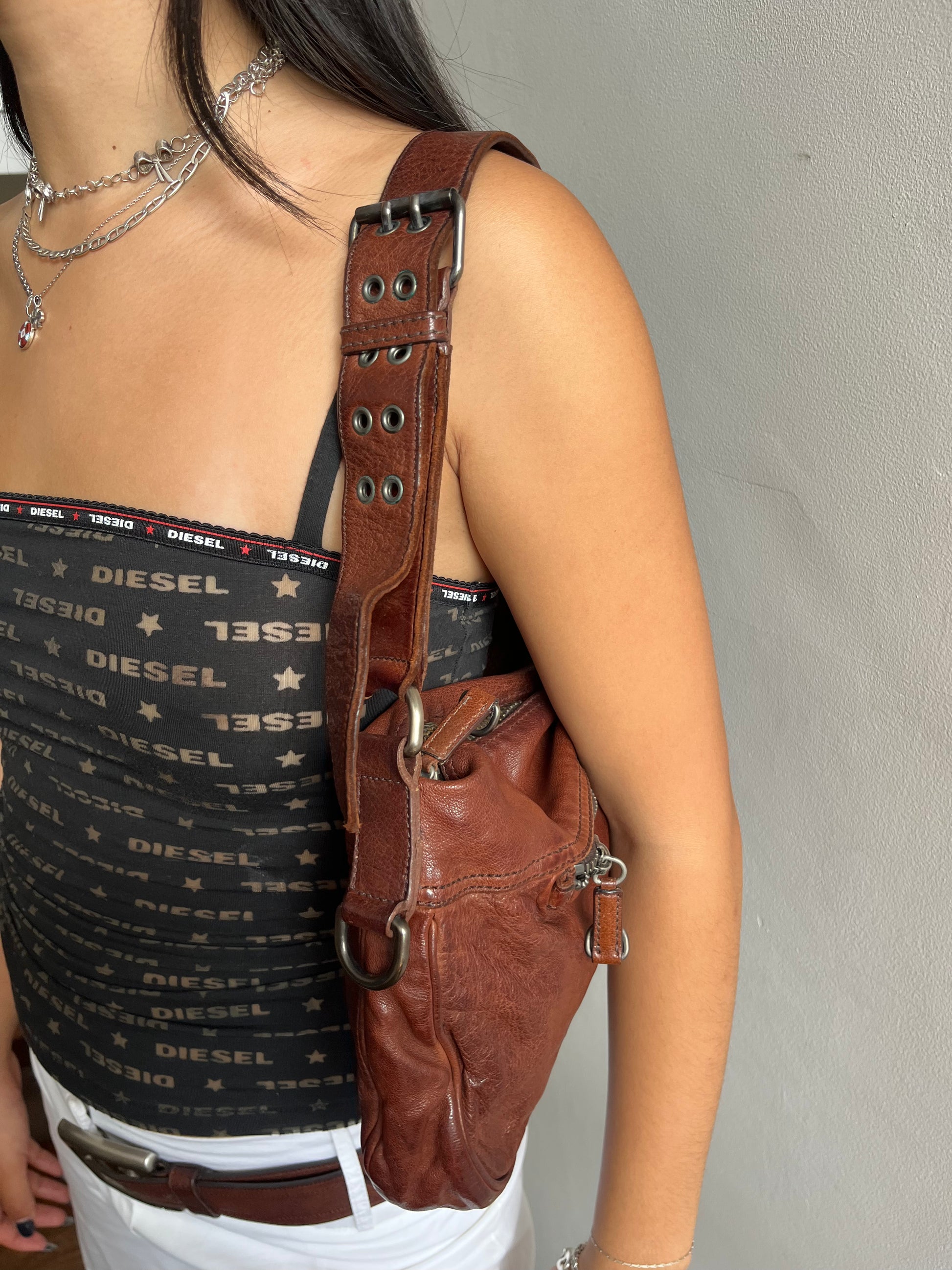 -Exposed silver zip closure and back pocket zip
