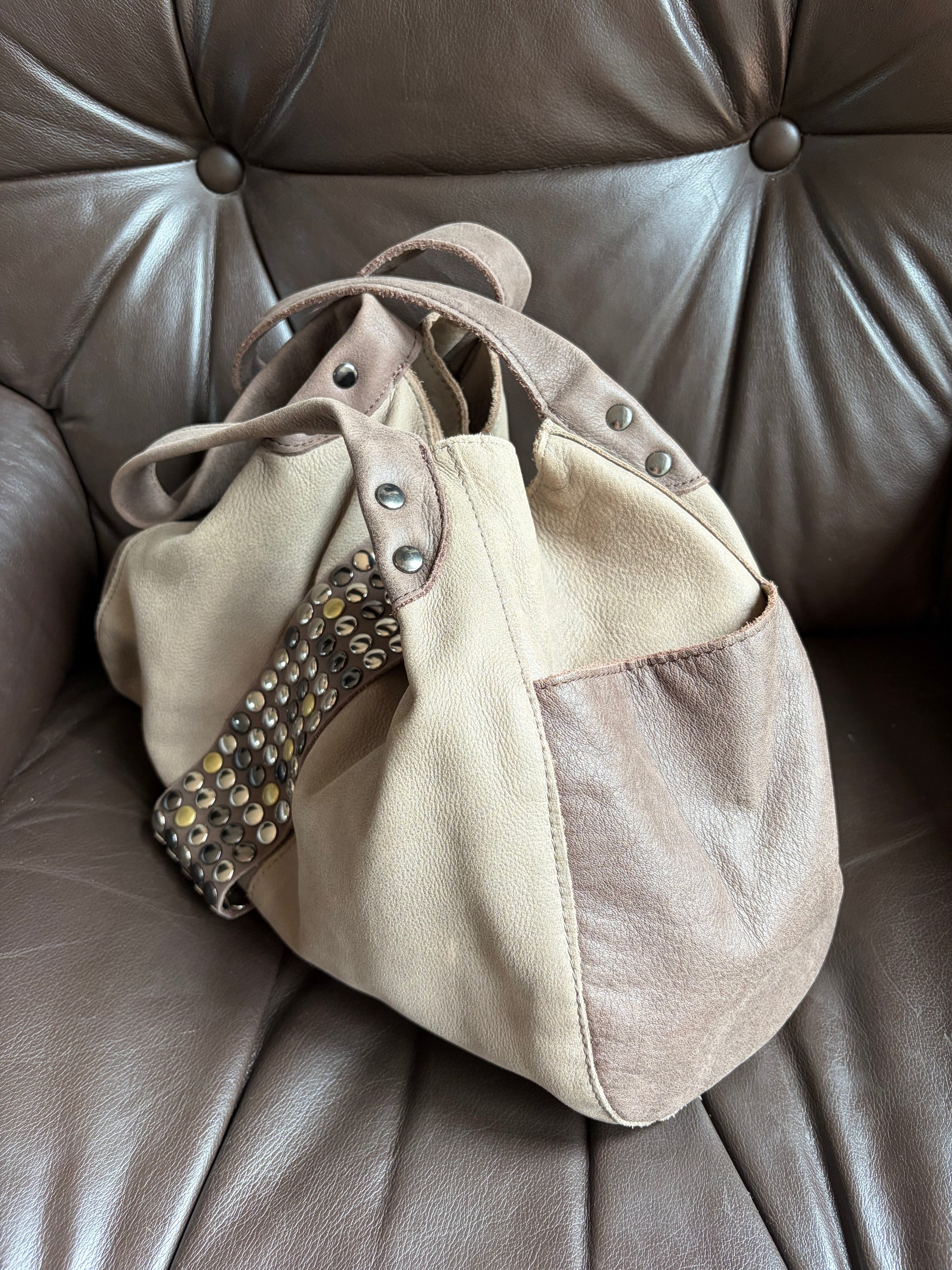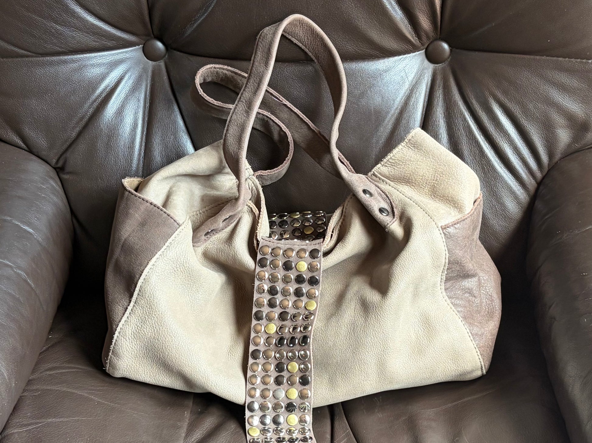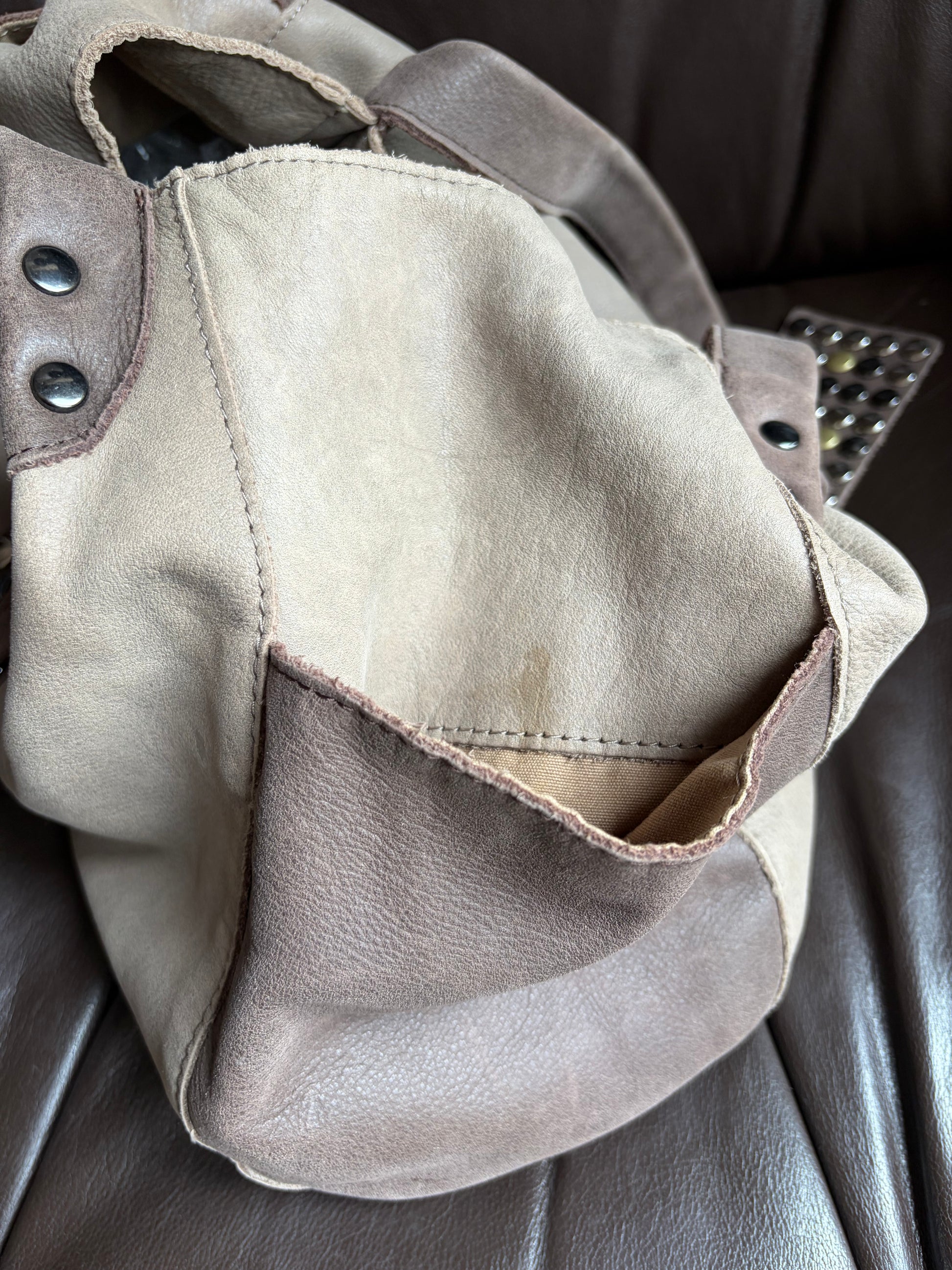 -Soft leather in contrasting greys tones