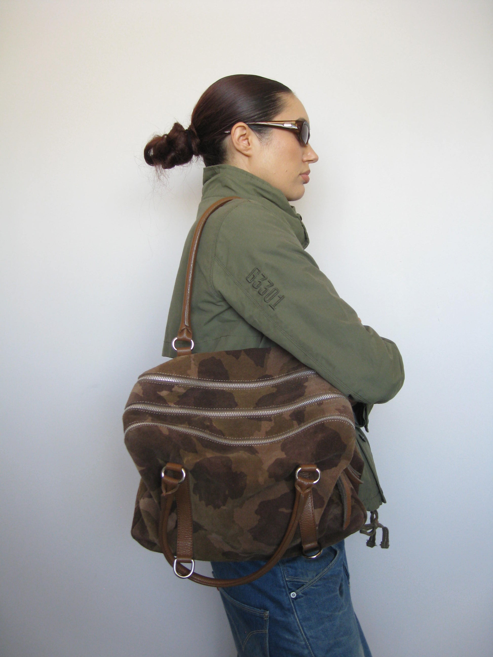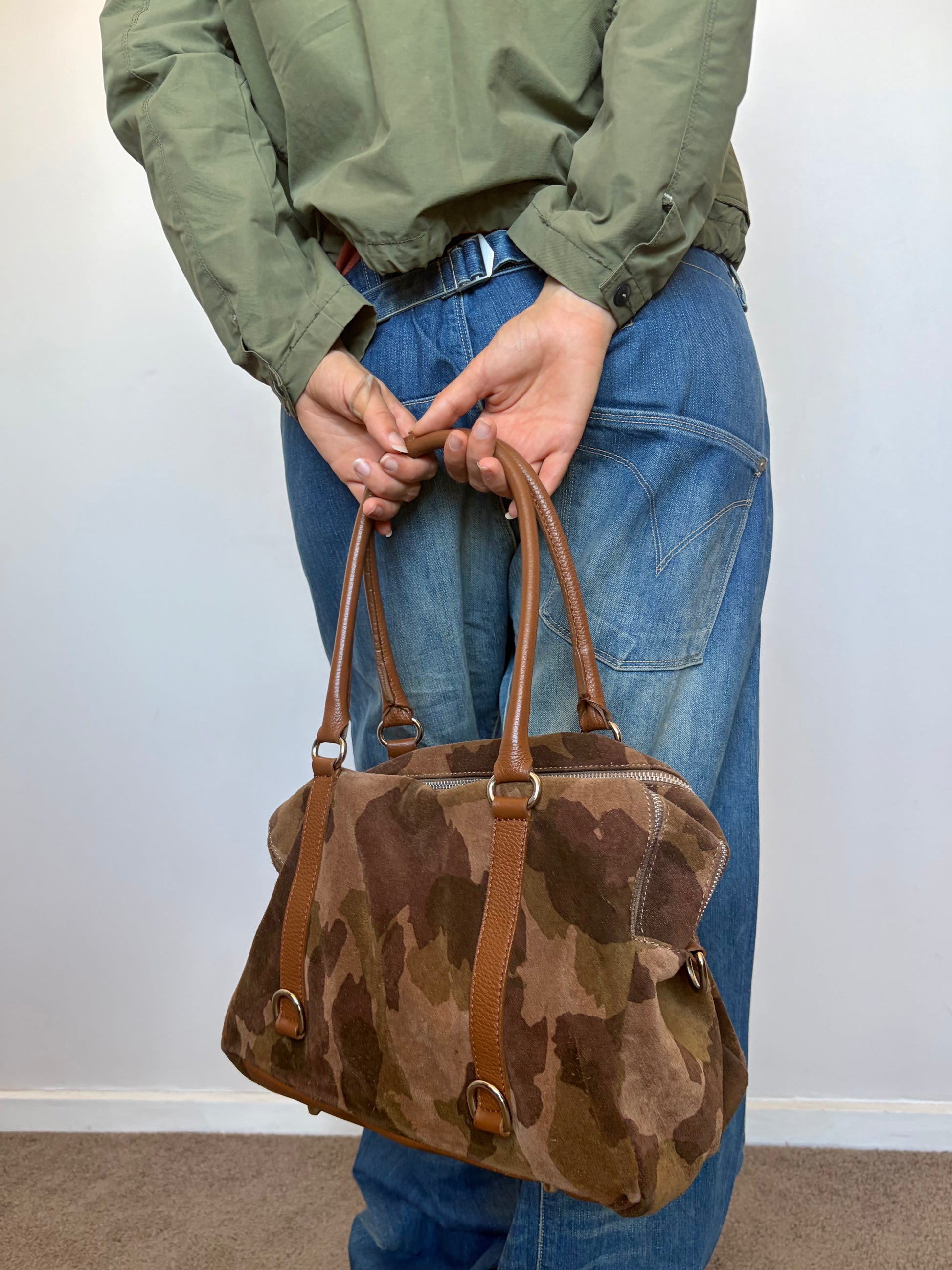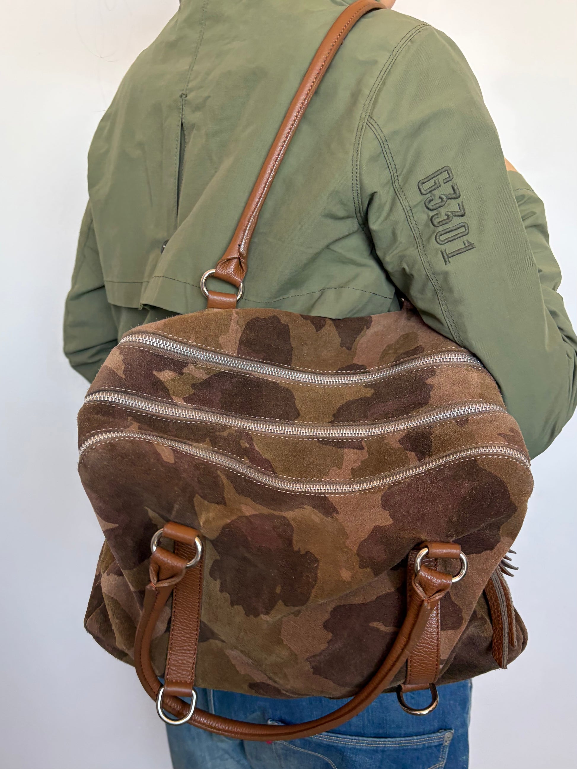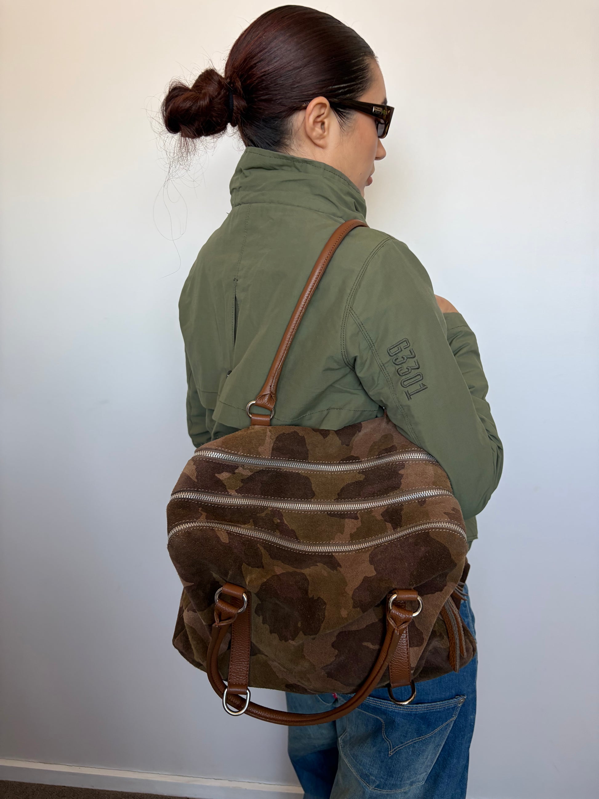 -Camouflage printed suede