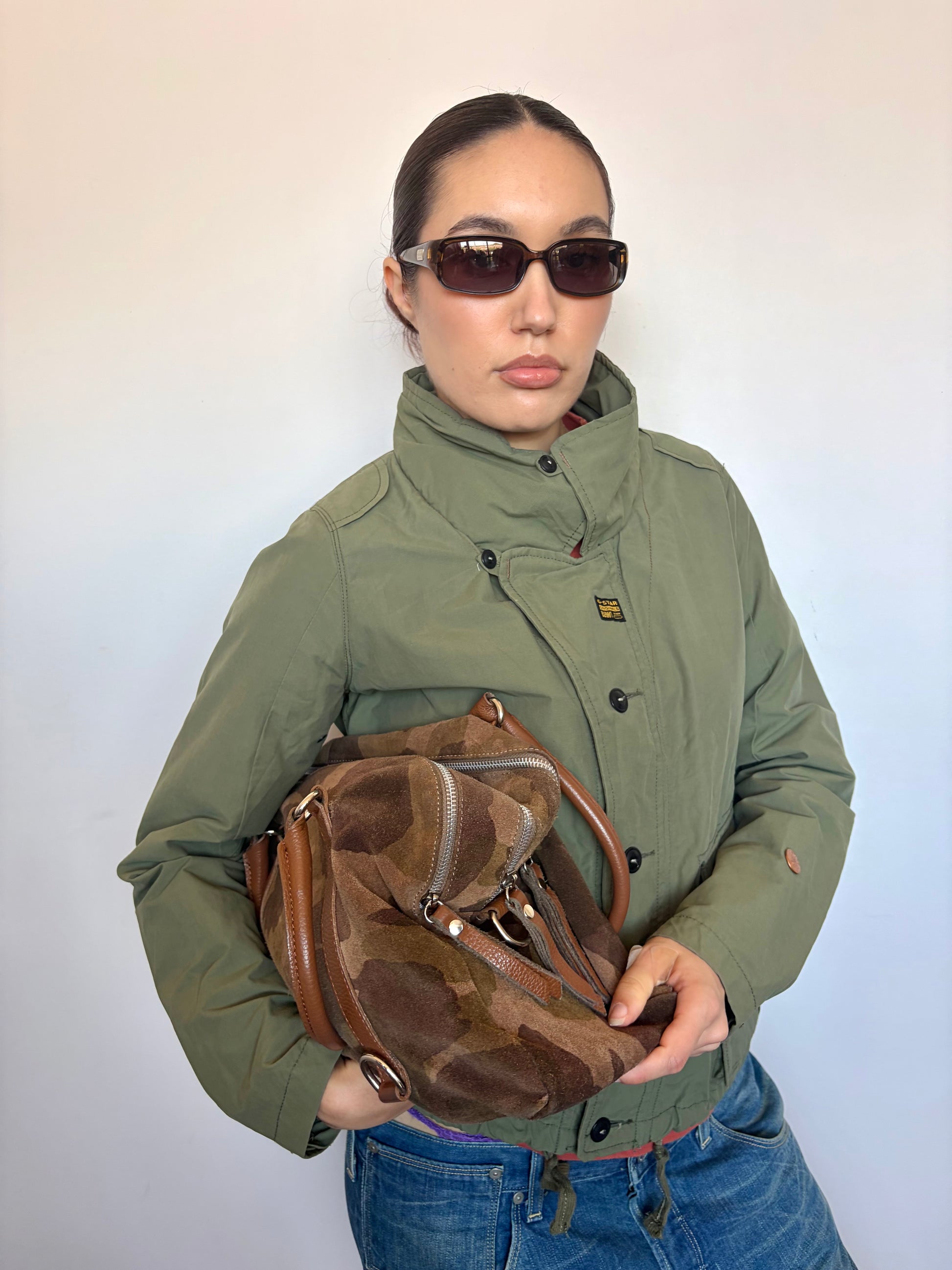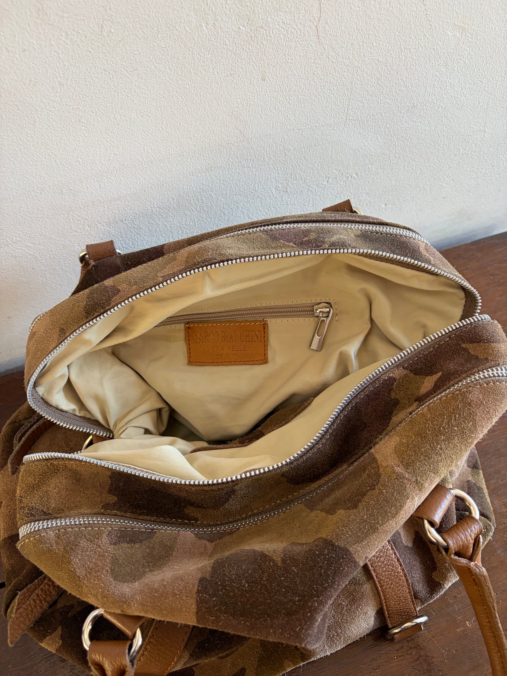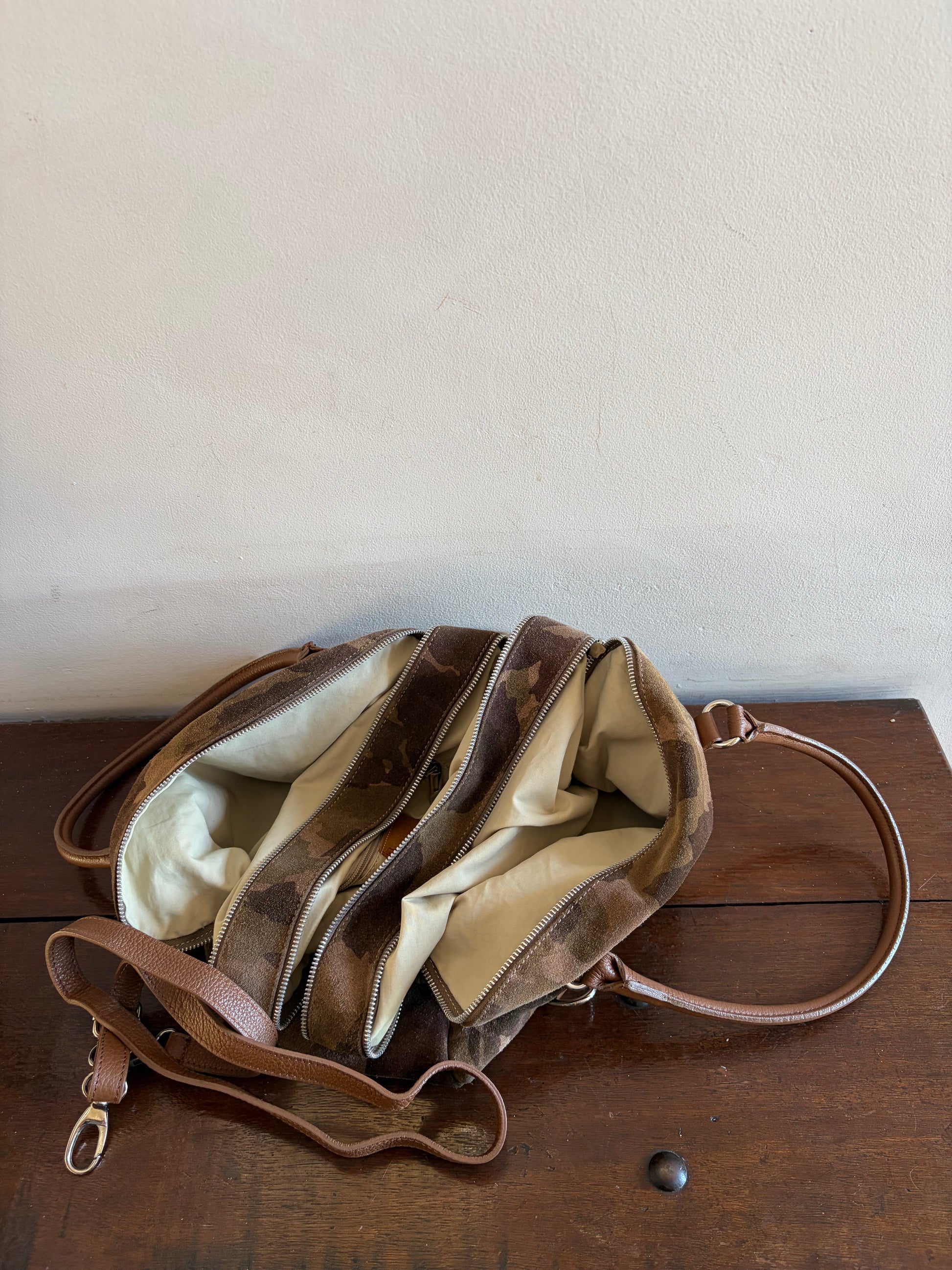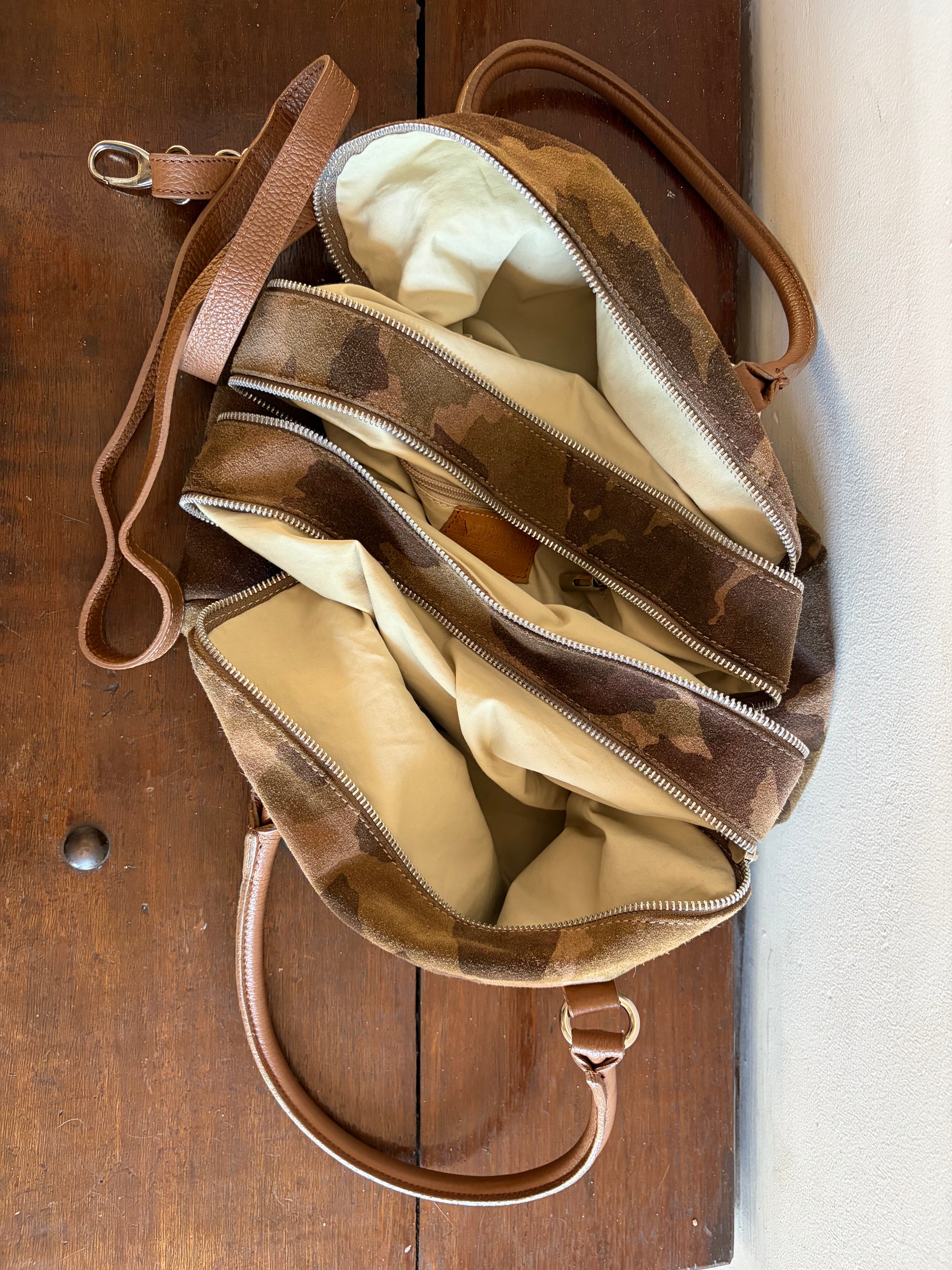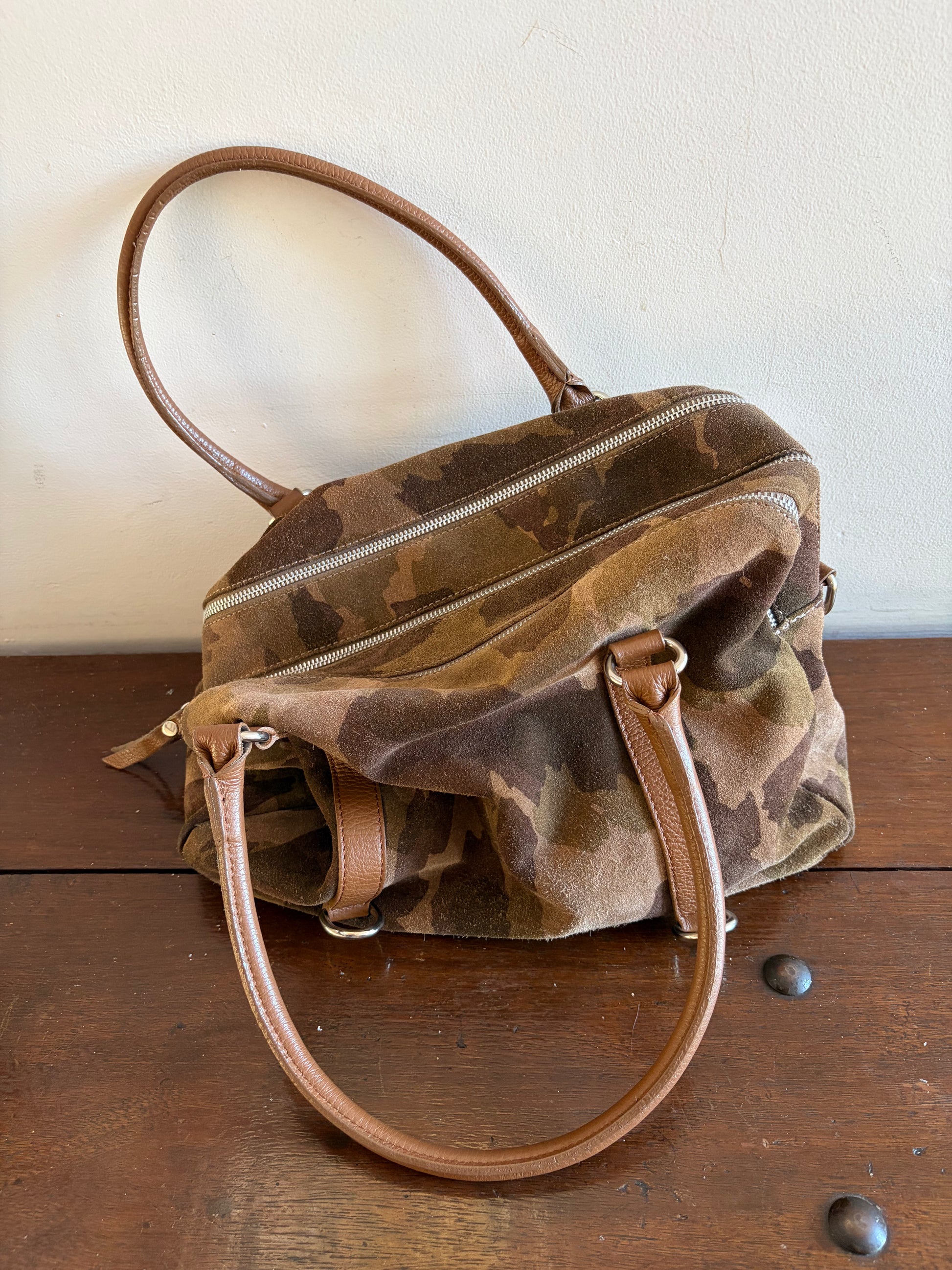 -Camouflage printed suede